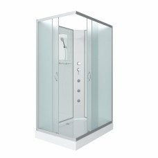 Оснащение bluetooth / LED-подсветка / Арома-лейка с витамином С / Вентиляция / Гидромассажные форсунки / Переключатель режимов / Полимерная вставка в поддон / Полочки / Радио / Сифон / Смеситель / Тропический (верхний) душ