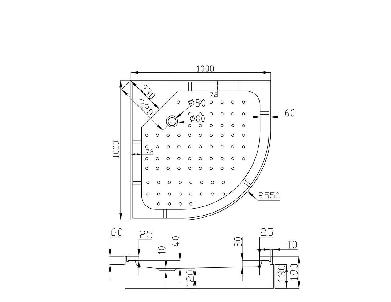 - Вид поддона: низкий