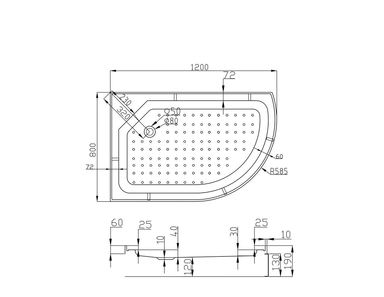 Высота поддона, см 19 см