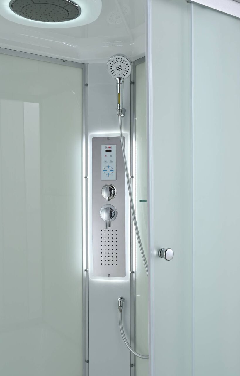 Оснащение bluetooth / LED-подсветка / Арома-лейка с витамином С / Вытяжка / Переключатель режимов / Полочка / Радио / Сифон / Смеситель / Тропический (верхний) душ
