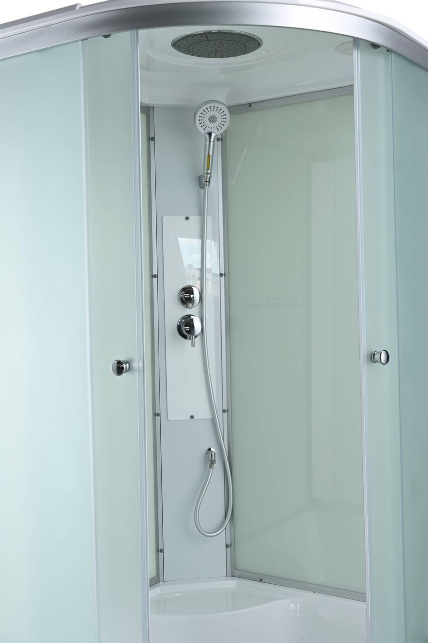 Стильная душевая кабина AvaCan C 5010 сочетает в себе высокую функциональность, практичность и надежность. При изготовлении применяется безопасное закаленное стекло толщиной 4 мм (матовое), надежно фиксируемое алюминиевым профилем. Сборка без силикона (увеличивает срок службы), внутренняя сборка (облегчает установку и ревизию, позволяет установить душевую кабину в ограниченном пространстве),смеситель резьбовой (без хомутов), съемный экран поддона (позволяет осуществлять ревизию сифона), цвет профиля матовый хром. Двойные металлические ролики дверей (увеличивают срок службы).В комплекте : полочка, тропический (верхний) душ, арома-лейка с витамином С (картридж съемный).