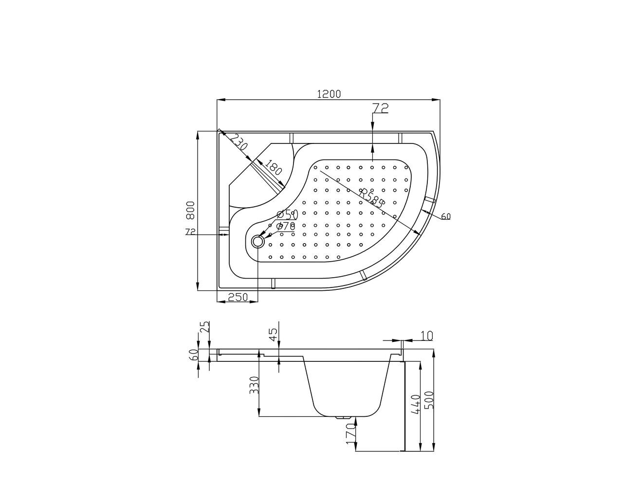 Высота поддона, см 50 см