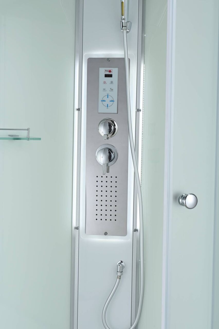 Стильная душевая кабина AvaCan C 5090 LED сочетает в себе высокую функциональность, практичность и надежность. При изготовлении применяется безопасное закаленное стекло толщиной 4 мм (матовое), надежно фиксируемое алюминиевым профилем. Сборка без силикона (увеличивает срок службы), внутренняя сборка(облегчает установку и ревизию; позволяет установить в ограниченном пространстве), смеситель резьбовой (без хомутов). Съемный экран поддона (позволяет осуществлять ревизию сифона). Цвет профиля матовый хром. Двойные металлические ролики дверей (увеличивают срок службы).В комплекте : полочка, тропический (верхний) душ, арома-лейка с витамином С (картридж съемный), сенсорный пульт (блютуз, радио, LED подсветка в крыше и в центральной панели, вентелятор.)