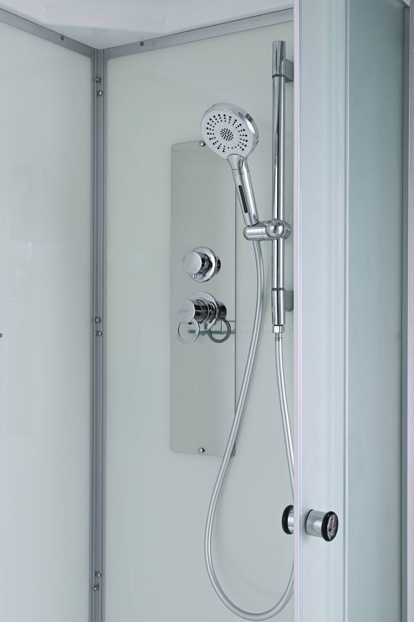 Стильная душевая кабина AvaCan D 2012L сочетает в себе высокую функциональность, практичность и надежность. При изготовлении применяется безопасное закаленное стекло толщиной 4 мм (матовое), надежно фиксируемое алюминиевым профилем. Сборка без силикона (увеличивает срок службы), внутренняя сборка (облегчает установку и ревизию, позволяет установить душевую кабину в ограниченном пространстве),смеситель резьбовой (без хомутов), съемный экран поддона (позволяет осуществлять ревизию сифона), цвет профиля матовый хром. Двойные металлические ролики дверей (увеличивают срок службы).В комплекте : душевая штанга, полочка, тропический (верхний) душ, арома-лейка с витамином С (картридж съемный).
