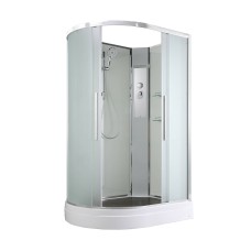 Оснащение Арома-лейка с витамином С / Душевая штанга / Переключатель режимов / Полимерная вставка в поддон / Полочки / Сифон / Смеситель