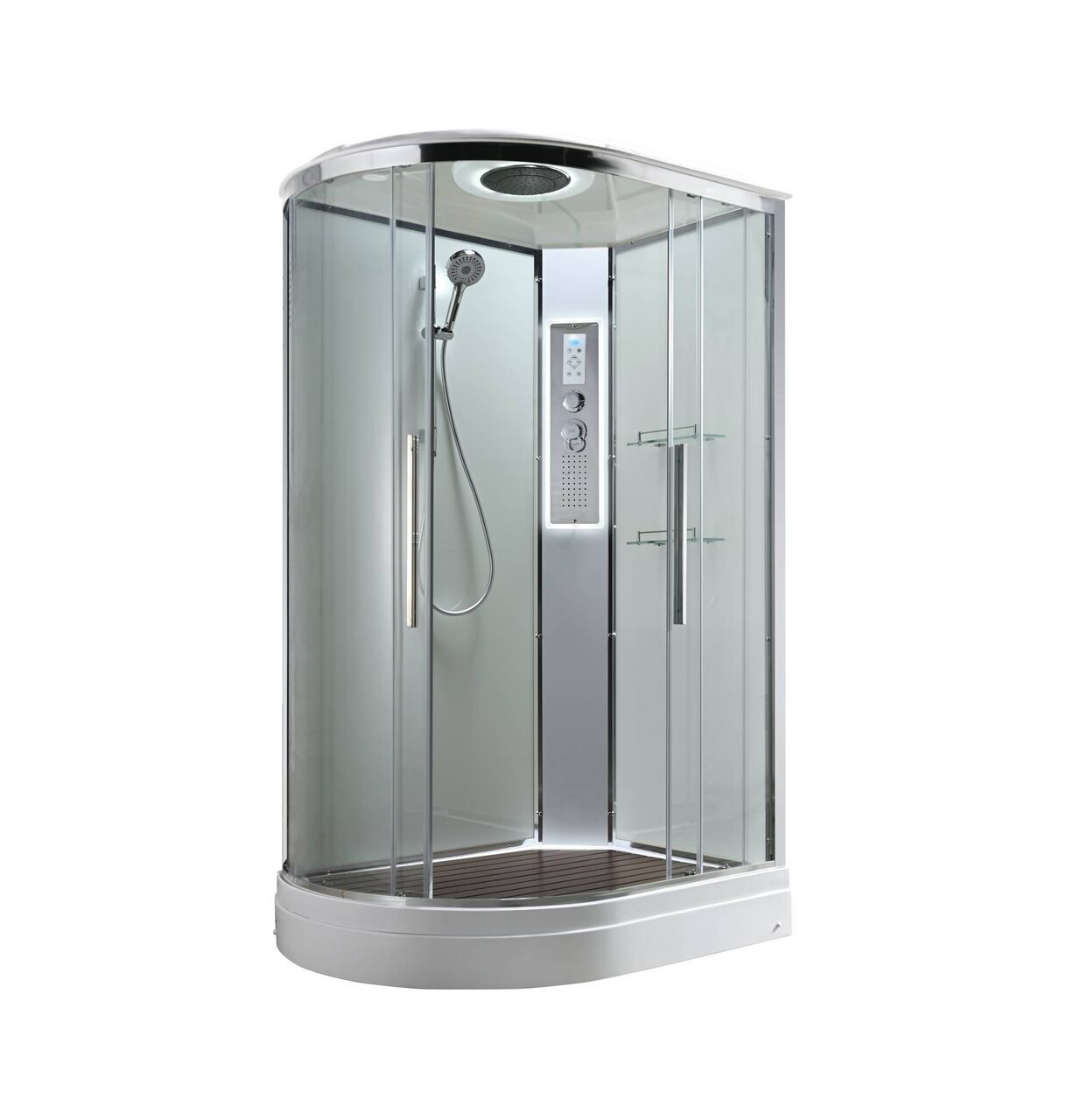 Оснащение bluetooth / LED-подсветка / Арома-лейка с витамином С / Вентиляция / Гидромассажные форсунки / Переключатель режимов / Полимерная вставка в поддон / Полочки / Радио / Сифон / Смеситель / Тропический (верхний) душ