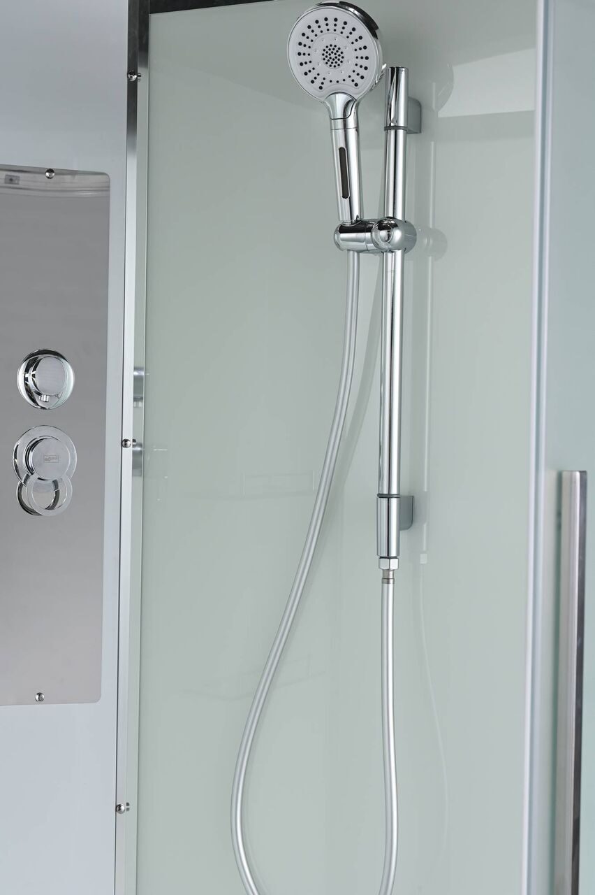 Стильная душевая кабина AvaCan сочетает в себе высокую функциональность, практичность и надежность. При изготовлении применяется безопасное закаленное стекло, надежно фиксируемое алюминиевым профилем.Профиль сделан из алюминия повышенной прочности. Сборка без силикона (увеличивает срок службы, защищает от протечек), внутренняя сборка (облегчает установку и ревизию; позволяет установить в ограниченном пространстве и обойтись без демонтажа других сантехнических приборов), смеситель резьбовой (без хомутов). Съемный экран поддона (позволяет осуществлять подключение и ревизию сифона). Двойные металлические ролики дверей (распределение нагрузки на два ролика, увеличивают срок службы). Душевая штанга (позволяет регулировать по высоте ручную лейку), ручная арома-лейка с витамином С (картридж в комплекте, есть возможность замены или удаления картриджа), полочки (из стекла, с ограничителем), сифон с гидрозатвором, сенсорный пульт управления с функциями: блютуз, LED подсветка, радио, вытяжка, гидромассаж спины, тропический (верхний) душ.