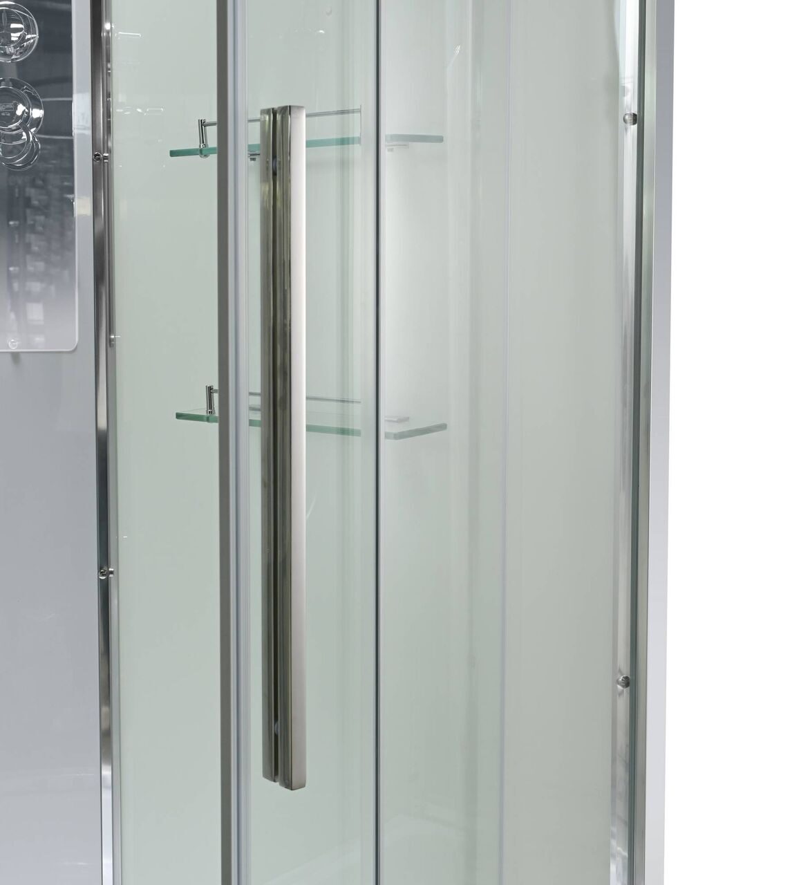 Оснащение bluetooth / LED-подсветка / Арома-лейка с витамином С / Вентиляция / Гидромассажные форсунки / Переключатель режимов / Полимерная вставка в поддон / Полочки / Радио / Сифон / Смеситель / Тропический (верхний) душ