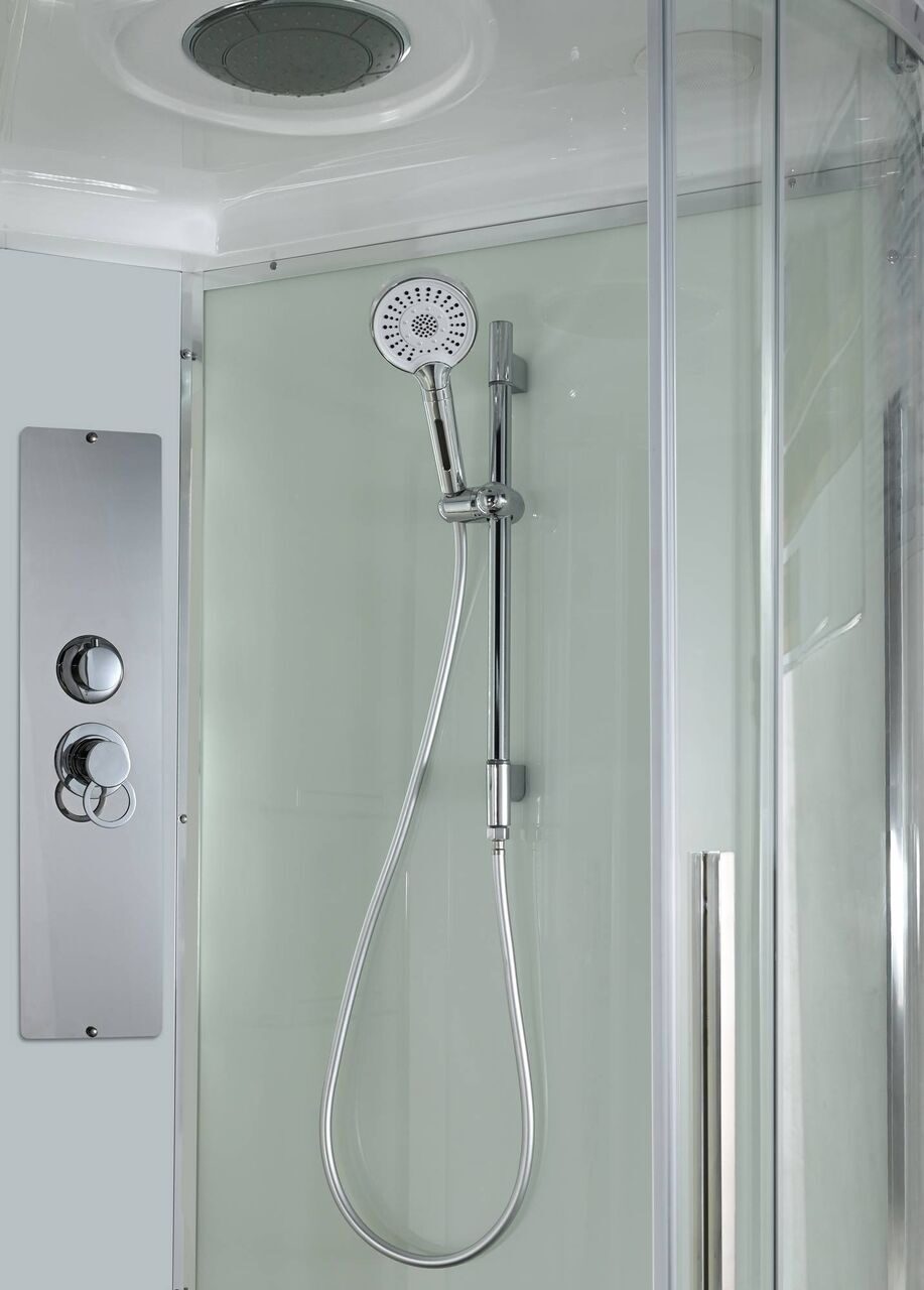 Стильная душевая кабина AvaCan сочетает в себе высокую функциональность, практичность и надежность. При изготовлении применяется безопасное закаленное стекло, надежно фиксируемое алюминиевым профилем. Профиль сделан из алюминия повышенной прочности. Сборка без силикона (увеличивает срок службы, защищает от протечек), внутренняя сборка (облегчает установку и ревизию; позволяет установить в ограниченном пространстве и обойтись без демонтажа других сантехнических приборов), смеситель резьбовой (без хомутов). Съемный экран поддона (позволяет осуществлять подключение и ревизию сифона). Двойные металлические ролики дверей (распределение нагрузки на два ролика, увеличивают срок службы). Душевая штанга (позволяет регулировать по высоте ручную лейку), ручная арома-лейка с витамином С (картридж в комплекте, есть возможность замены или удаления картриджа), полочки (из стекла, с ограничителем), сифон с гидрозатвором.