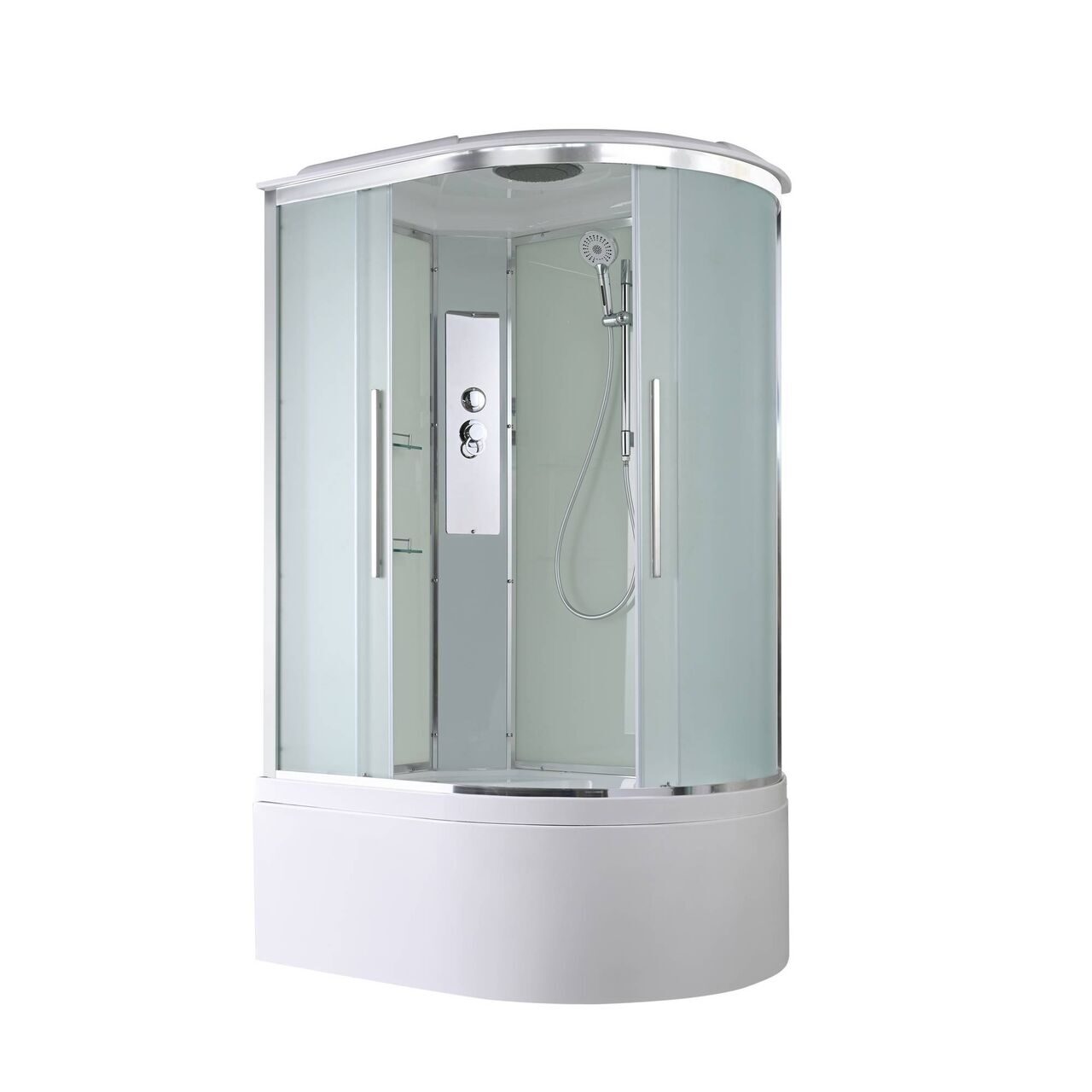 Оснащение Арома-лейка с витамином С / Душевая штанга / Переключатель режимов / Полимерная вставка в поддон / Полочки / Сифон / Смеситель / Тропический (верхний) душ