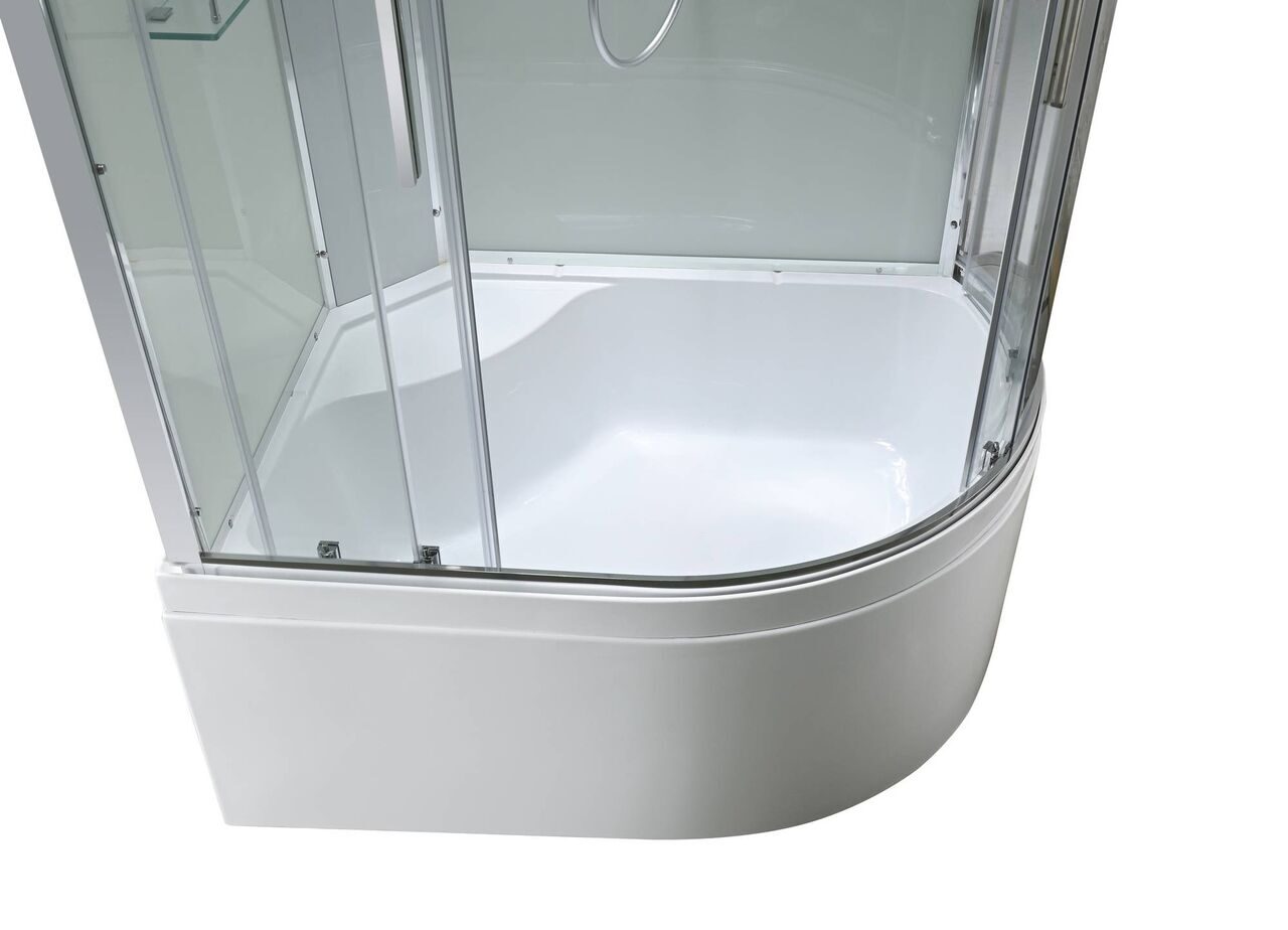 Оснащение Арома-лейка с витамином С / Душевая штанга / Переключатель режимов / Полимерная вставка в поддон / Полочки / Сифон / Смеситель
