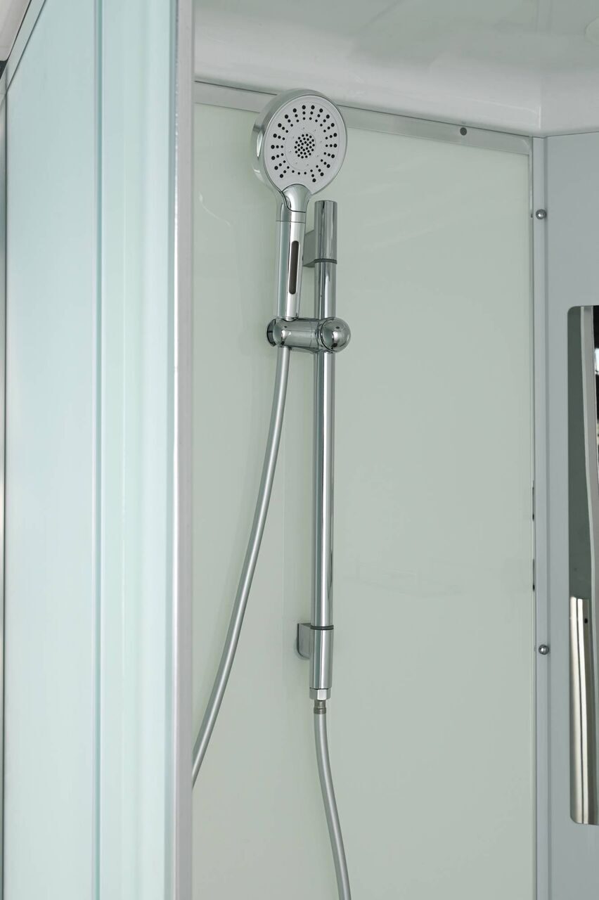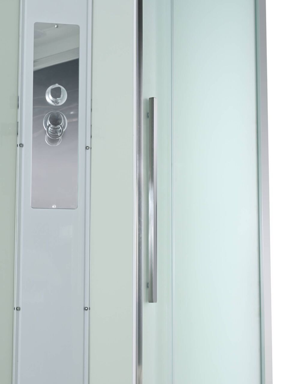 Стильная душевая кабина AvaCan сочетает в себе высокую функциональность, практичность и надежность. При изготовлении применяется безопасное закаленное стекло, надежно фиксируемое алюминиевым профилем. Профиль сделан из алюминия повышенной прочности. Сборка без силикона (увеличивает срок службы, защищает от протечек), внутренняя сборка (облегчает установку и ревизию; позволяет установить в ограниченном пространстве и обойтись без демонтажа других сантехнических приборов), смеситель резьбовой (без хомутов). Съемный экран поддона (позволяет осуществлять подключение и ревизию сифона). Двойные металлические ролики дверей (распределение нагрузки на два ролика, увеличивают срок службы). Душевая штанга (позволяет регулировать по высоте ручную лейку), ручная арома-лейка с витамином С (картридж в комплекте, есть возможность замены или удаления картриджа), полочки (из стекла, с ограничителем), сифон с гидрозатвором.