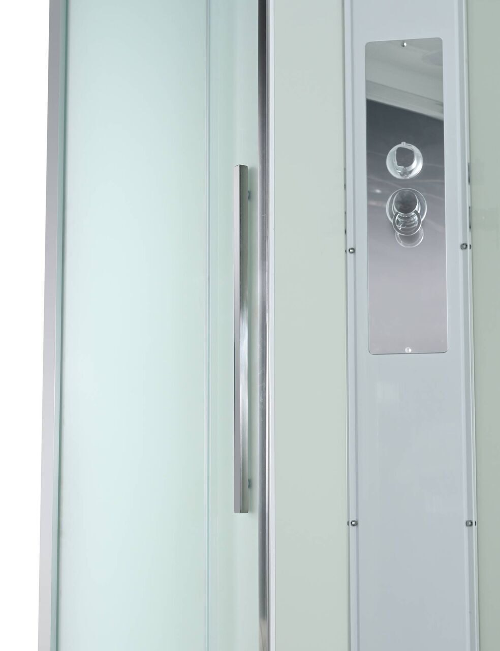 Стильная душевая кабина AvaCan сочетает в себе высокую функциональность, практичность и надежность. При изготовлении применяется безопасное закаленное стекло, надежно фиксируемое алюминиевым профилем. Профиль сделан из алюминия повышенной прочности. Сборка без силикона (увеличивает срок службы, защищает от протечек), внутренняя сборка (облегчает установку и ревизию; позволяет установить в ограниченном пространстве и обойтись без демонтажа других сантехнических приборов), смеситель резьбовой (без хомутов). Съемный экран поддона (позволяет осуществлять подключение и ревизию сифона). Двойные металлические ролики дверей (распределение нагрузки на два ролика, увеличивают срок службы). Душевая штанга (позволяет регулировать по высоте ручную лейку), ручная арома-лейка с витамином С (картридж в комплекте, есть возможность замены или удаления картриджа), полочки (из стекла, с ограничителем), сифон с гидрозатвором.