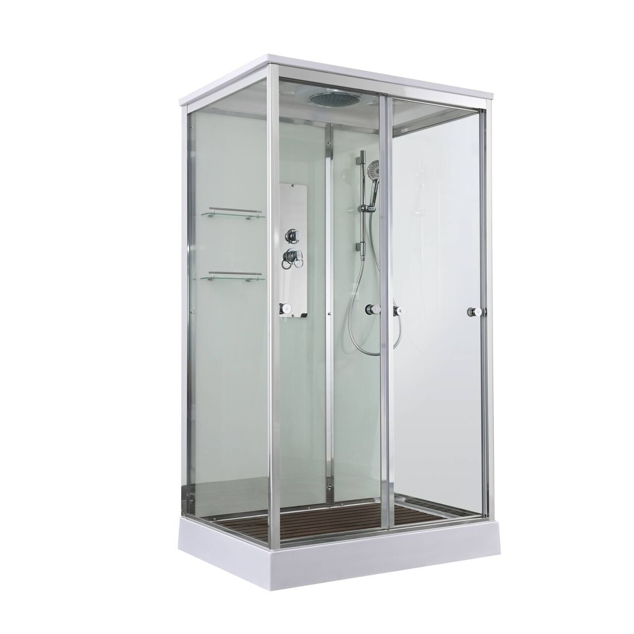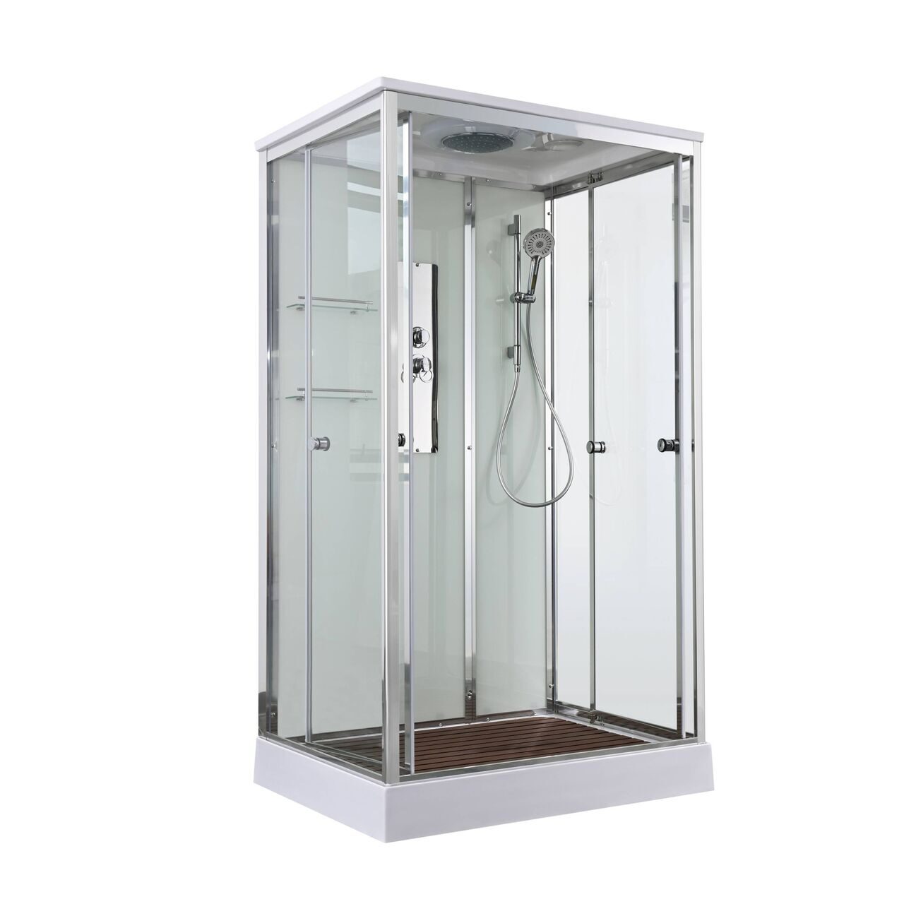 Стильная душевая кабина AvaCan сочетает в себе высокую функциональность, практичность и надежность. При изготовлении применяется безопасное закаленное стекло, надежно фиксируемое алюминиевым профилем. Профиль сделан из алюминия повышенной прочности. Сборка без силикона (увеличивает срок службы, защищает от протечек), внутренняя сборка (облегчает установку и ревизию; позволяет установить в ограниченном пространстве и обойтись без демонтажа других сантехнических приборов), смеситель резьбовой (без хомутов). Двойные металлические ролики дверей (распределение нагрузки на два ролика, увеличивают срок службы). Душевая штанга (позволяет регулировать по высоте ручную лейку), ручная арома-лейка с витамином С (картридж в комплекте, есть возможность замены или удаления картриджа), полочки (из стекла, с ограничителем), сифон с гидрозатвором.