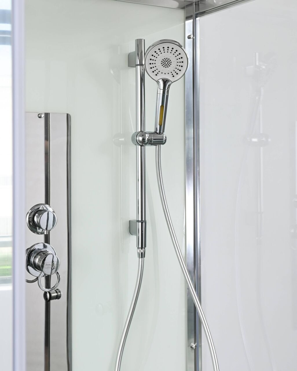 Стильная душевая кабина AvaCan сочетает в себе высокую функциональность, практичность и надежность. При изготовлении применяется безопасное закаленное стекло, надежно фиксируемое алюминиевым профилем. Профиль сделан из алюминия повышенной прочности. Сборка без силикона (увеличивает срок службы, защищает от протечек), внутренняя сборка (облегчает установку и ревизию; позволяет установить в ограниченном пространстве и обойтись без демонтажа других сантехнических приборов), смеситель резьбовой (без хомутов). Двойные металлические ролики дверей (распределение нагрузки на два ролика, увеличивают срок службы). Душевая штанга(позволяет регулировать по высоте ручную лейку), ручная арома-лейка с витамином С (картридж в комплекте, есть возможность замены или удаления картриджа), полочки (из стекла, с ограничителем), сифон с гидрозатвором.