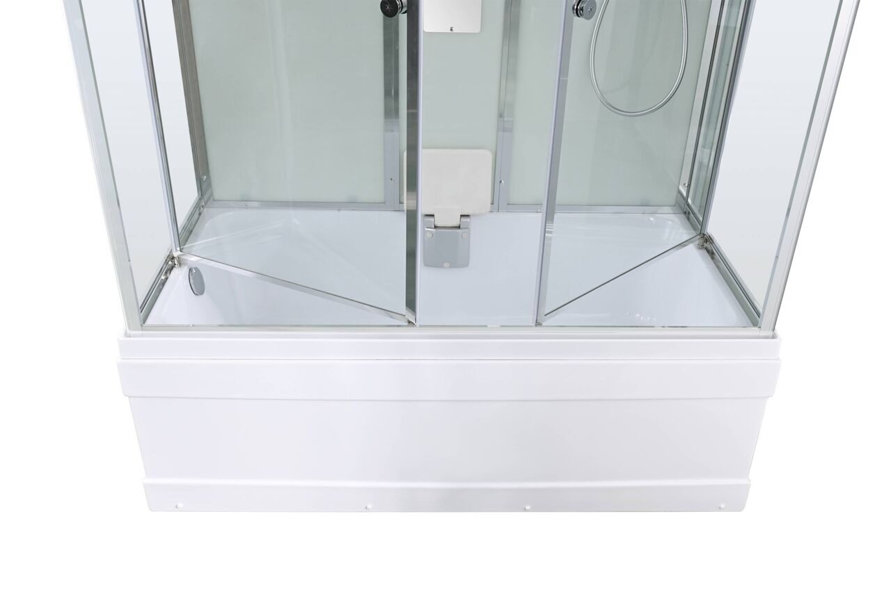 Стильная душевая кабина AvaCan сочетает в себе высокую функциональность, практичность и надежность. При изготовлении применяется безопасное закаленное стекло, надежно фиксируемое алюминиевым профилем. Профиль сделан из алюминия повышенной прочности. Сборка без силикона (увеличивает срок службы, защищает от протечек), внутренняя сборка (облегчает установку и ревизию; позволяет установить в ограниченном пространстве и обойтись без демонтажа других сантехнических приборов), смеситель резьбовой (без хомутов). Съемный экран поддона (позволяет осуществлять подключение и ревизию сифона). Двойные металлические ролики дверей (распределение нагрузки на два ролика, увеличивают срок службы). Душевая штанга (позволяет регулировать по высоте ручную лейку), ручная арома-лейка с витамином С (картридж в комплекте, есть возможность замены или удаления картриджа), полочки (из стекла, с ограничителем), сифон с гидрозатвором.