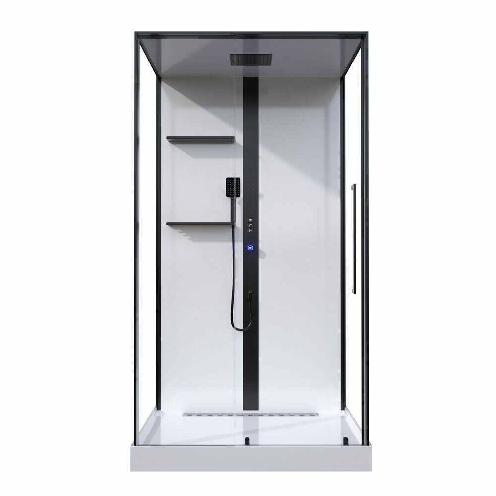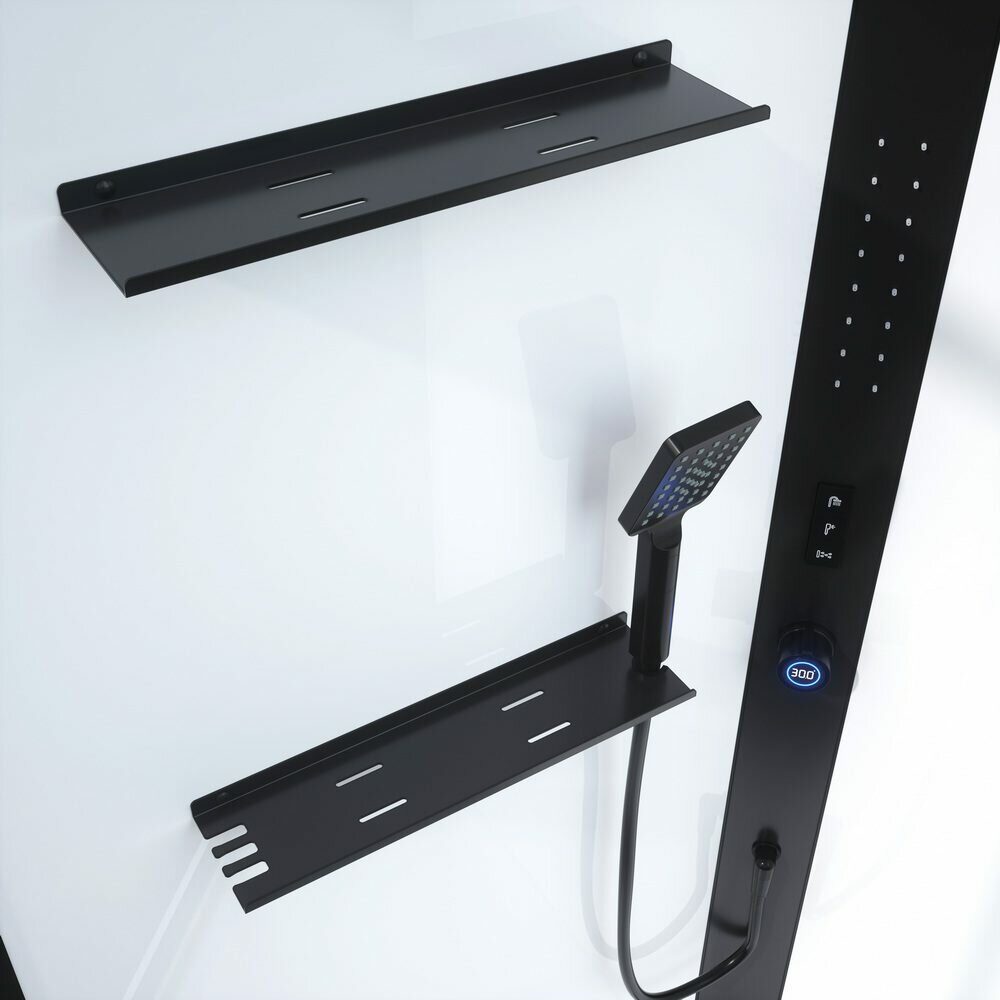 Стильная душевая кабина Black&White G8038 сочетает в себе высокую функциональность, практичность и надежность. Для изготовления применяют безопасное закаленное стекло толщиной 5 мм, надежно фиксируемое алюминиевым профилем. Цвет профиля черный матовый. В комплекте смеситель, душевой гарнитур, полочки, тропический (верхний) душ, гидромассажные форсунки.