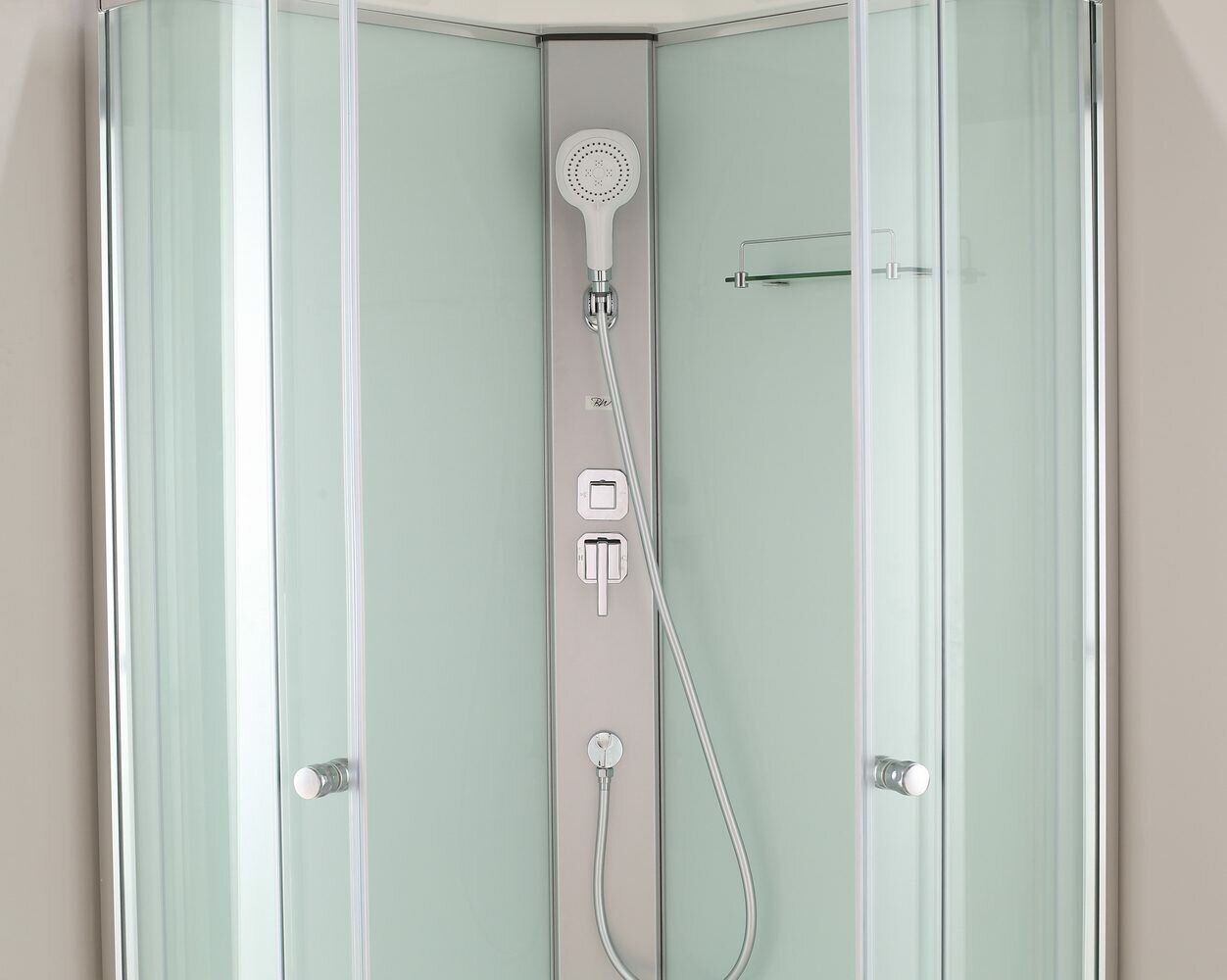 Стильная душевая кабина Black&White G8503 сочетает в себе высокую функциональность, практичность и надежность. Для изготовления применяют безопасное закаленное стекло толщиной 5 мм, надежно фиксируемое алюминиевым профилем. Цвет профиля хром. В комплекте смеситель, душевой гарнитур, полочка, тропический (верхний) душ.