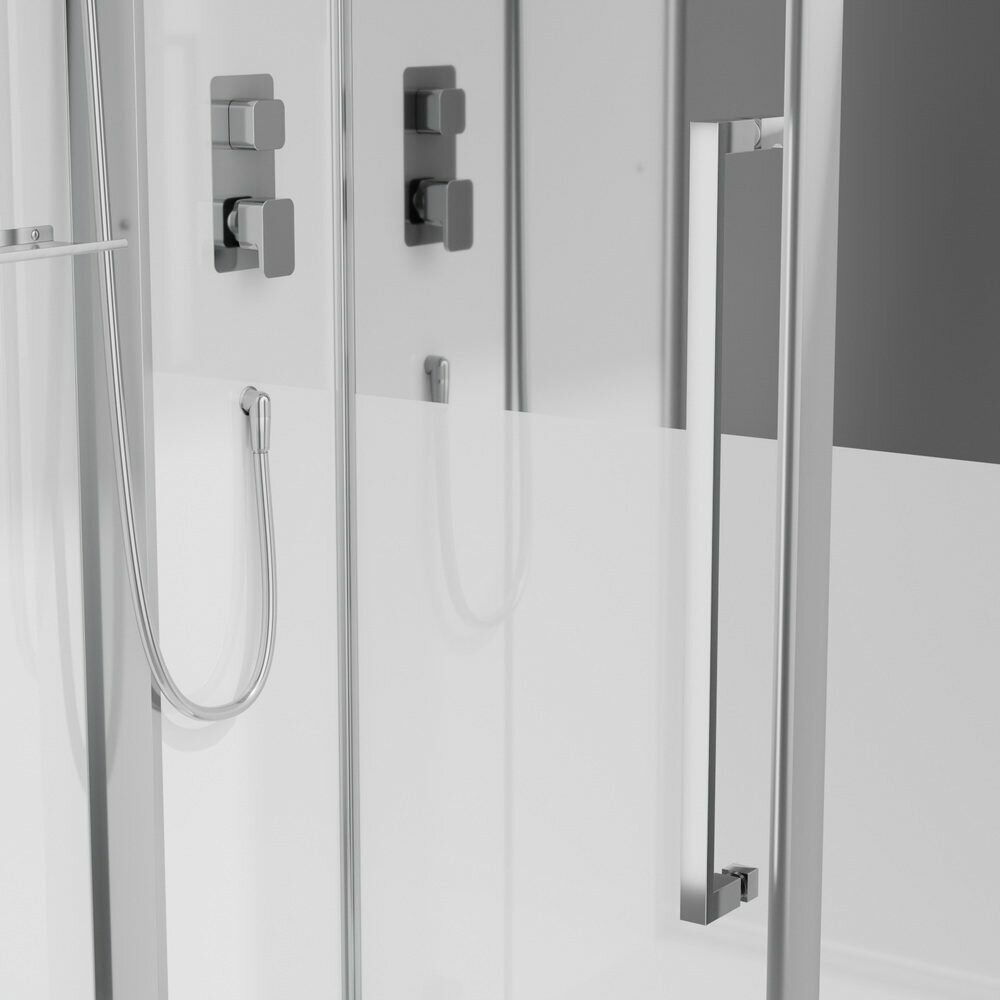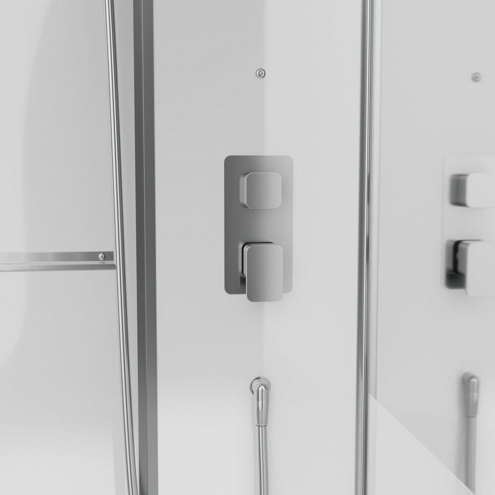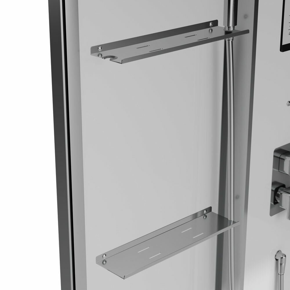 Оснащение bluetooth / LED-подсветка / Вентиляция / Душевой гарнитур / Зеркало / Озонирование / Парогенератор / Полочки / Радио / Тропический (верхний) душ