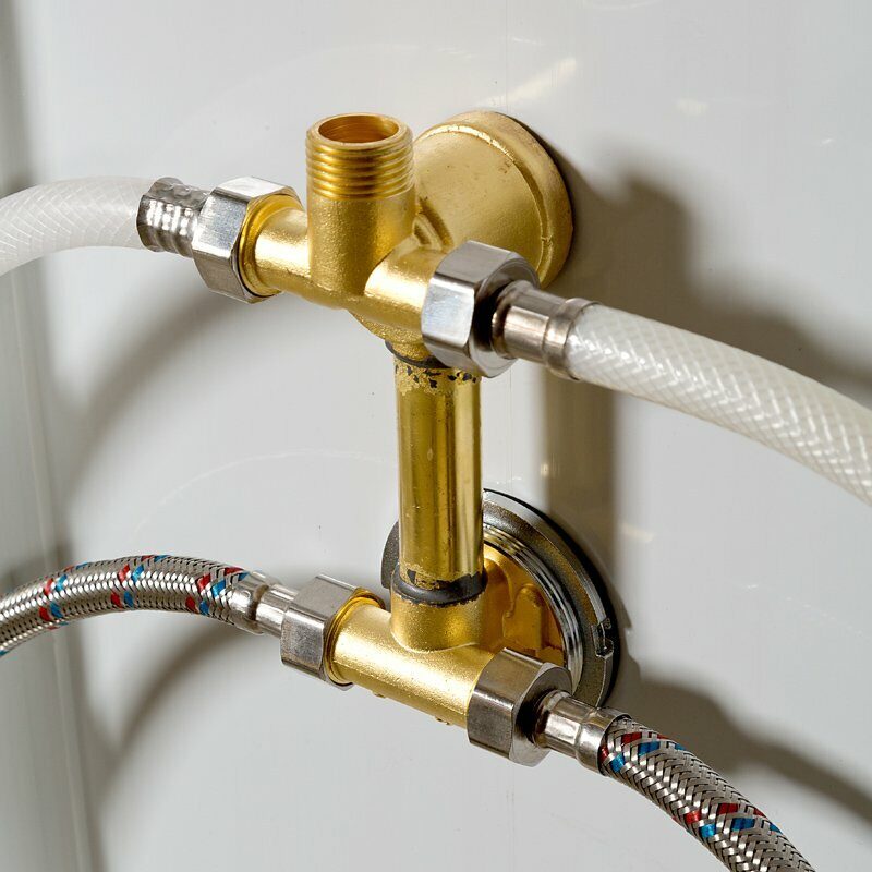 - Латунный смеситель с керамическими картриджами и резьбовыми соединениями.