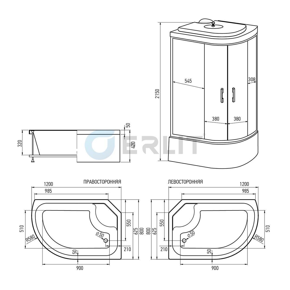 Душевая кабина Erlit Comfort ER3512TPL-C3-RUS 1200x800x2150