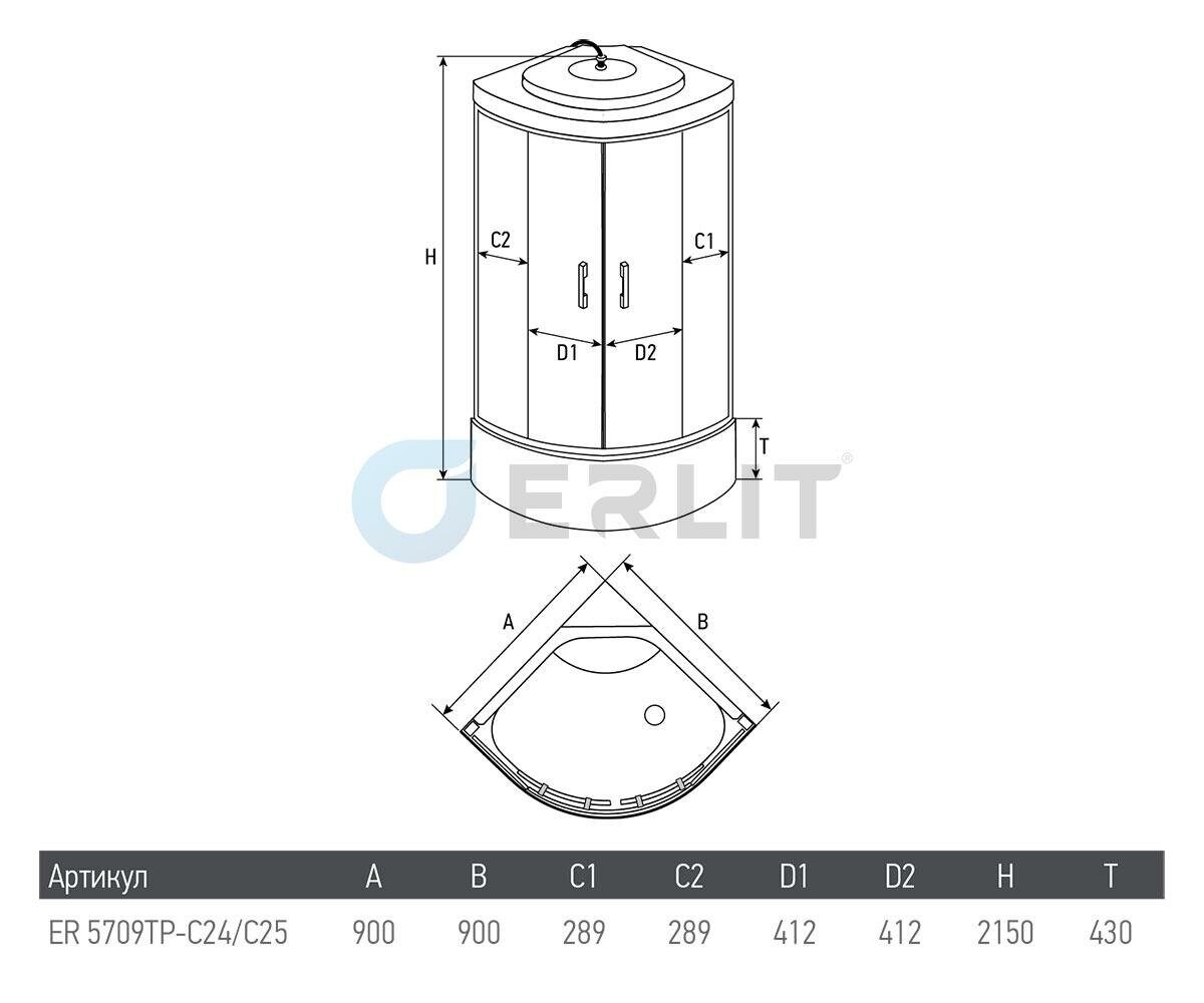 Душевая кабина Erlit Eclipse ER5709TP-C24 900x900x2150