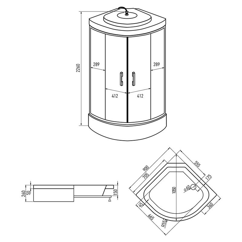 Душевая кабина ERLIT ER350926-C2-RUS 900х900х2260