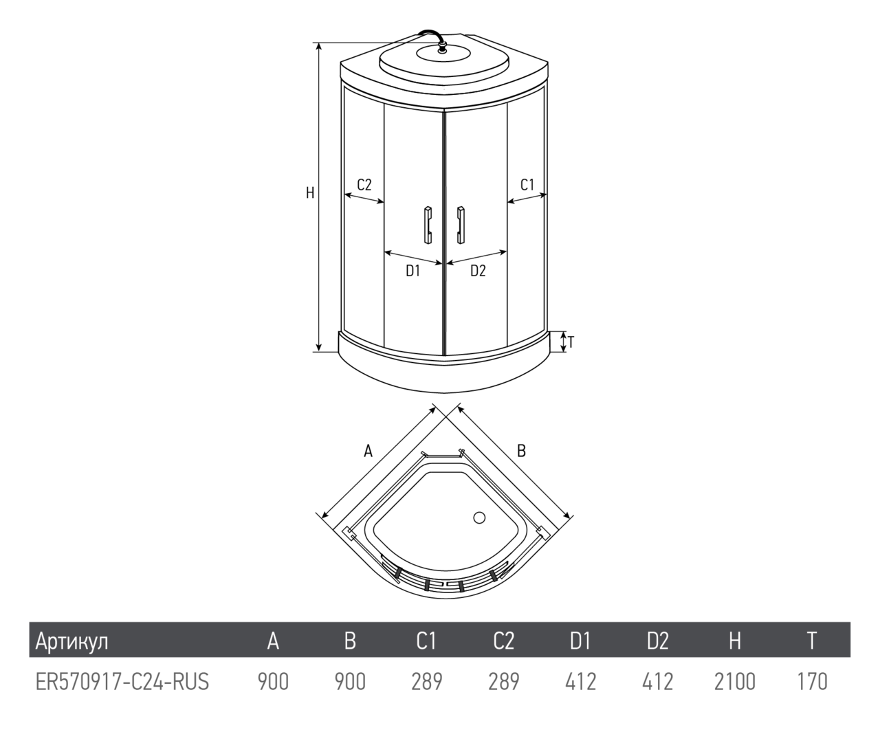 Душевая кабина ERLIT ER570917-C24-RUS 900х900х2100
