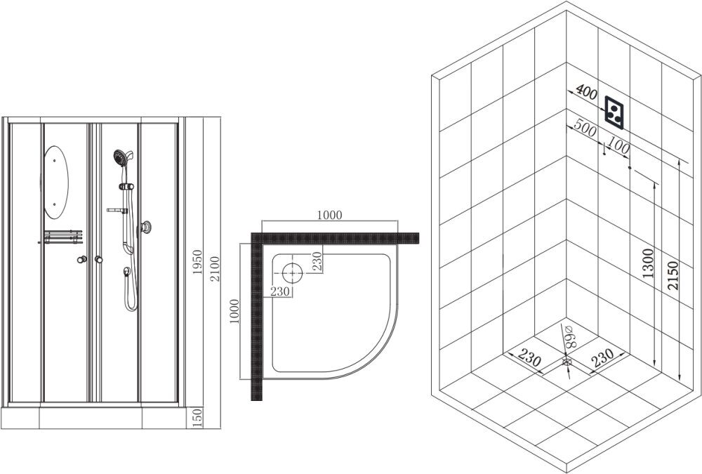Стильная душевая кабина Esbano-L100CR LED сочетает в себе высокую функциональность, практичность и надежность. Для изготовления применяют безопасное закаленное стекло толщиной 5 мм, надежно фиксируемое алюминиевым профилем. Цвет профиля белый. В комплекте мыльница, зеркало, душевой гарнитур, сифон, полочки, тропический (верхний) душ, вентиляция, радио.