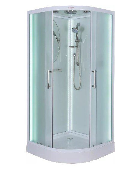 Стильная душевая кабина Esbano-L90CR LED сочетает в себе высокую функциональность, практичность и надежность. Для изготовления применяют безопасное закаленное стекло толщиной 5 мм, надежно фиксируемое алюминиевым профилем. Цвет профиля белый. В комплекте мыльница, душевой гарнитур, сифон, полочки, тропический (верхний) душ, вентиляция, радио.