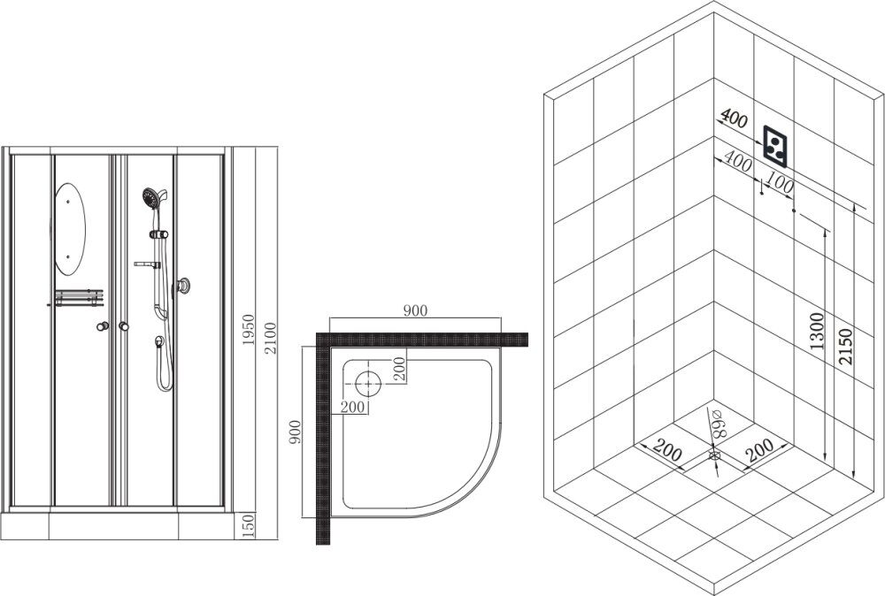 - Размеры (ш/г/в): 90х90х210