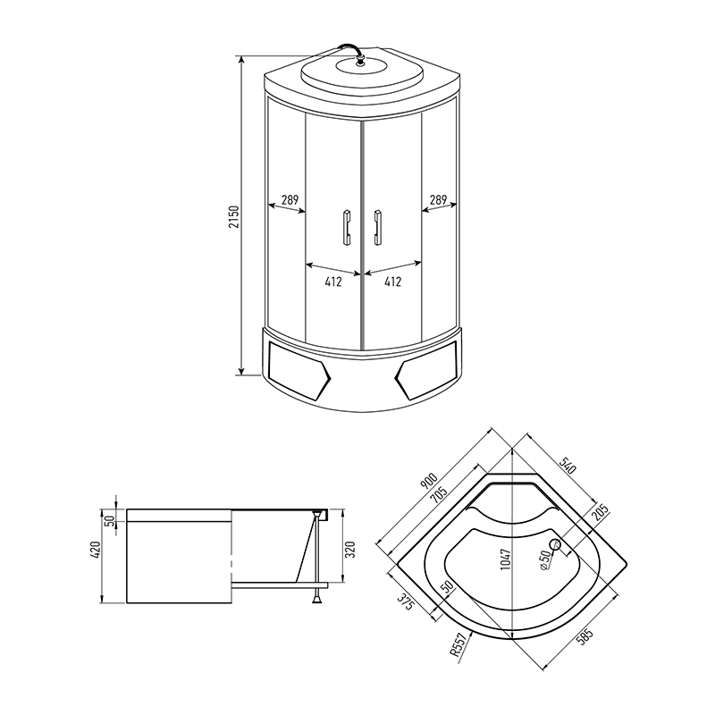 Душевая кабина MIRWELL MR3509TPF-C3-RUS 900х900х2150