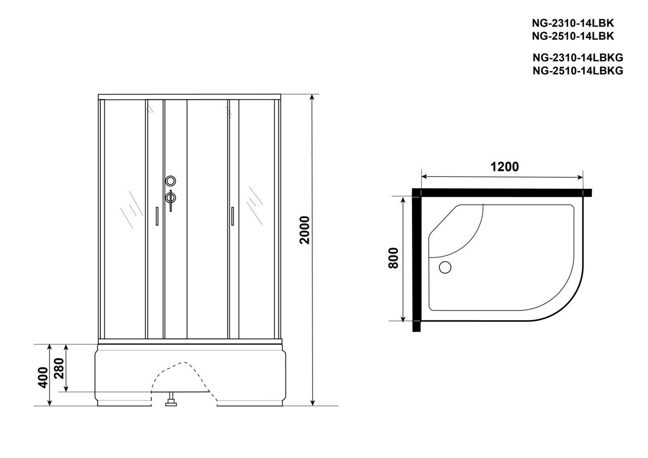 Душевая кабина Niagara Classic NG-2310-14LBKG 1200х800х2000