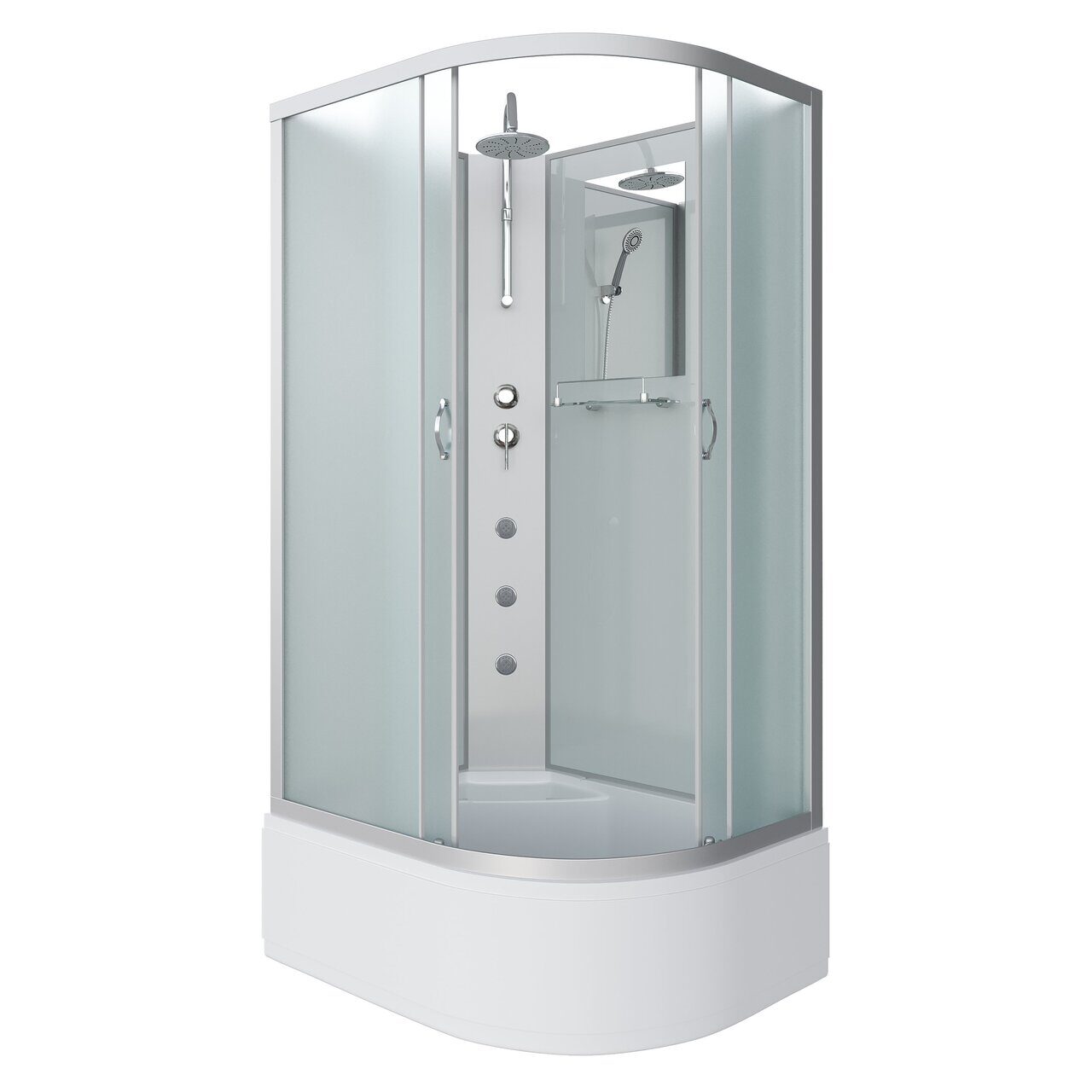 Оснащение Встроенное сиденье / Душевой гарнитур / Зеркало / Полочка / Тропический (верхний) душ