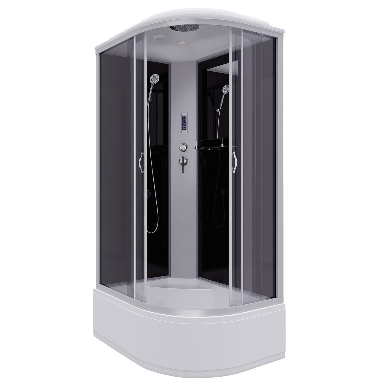 Оснащение LED-подсветка / Вентиляция / Встроенное сиденье / Душевой гарнитур / Зеркало / Полочка / Радио / Тропический (верхний) душ