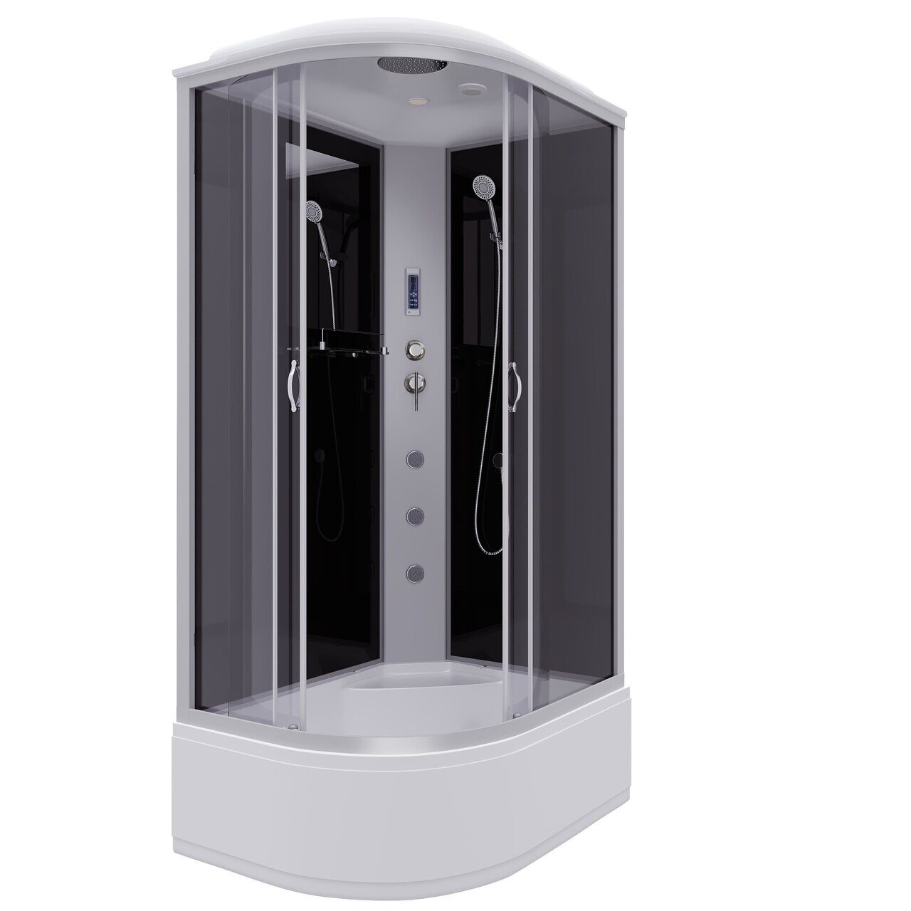 Оснащение LED-подсветка / Вентиляция / Встроенное сиденье / Душевой гарнитур / Зеркало / Полочка / Радио / Тропический (верхний) душ