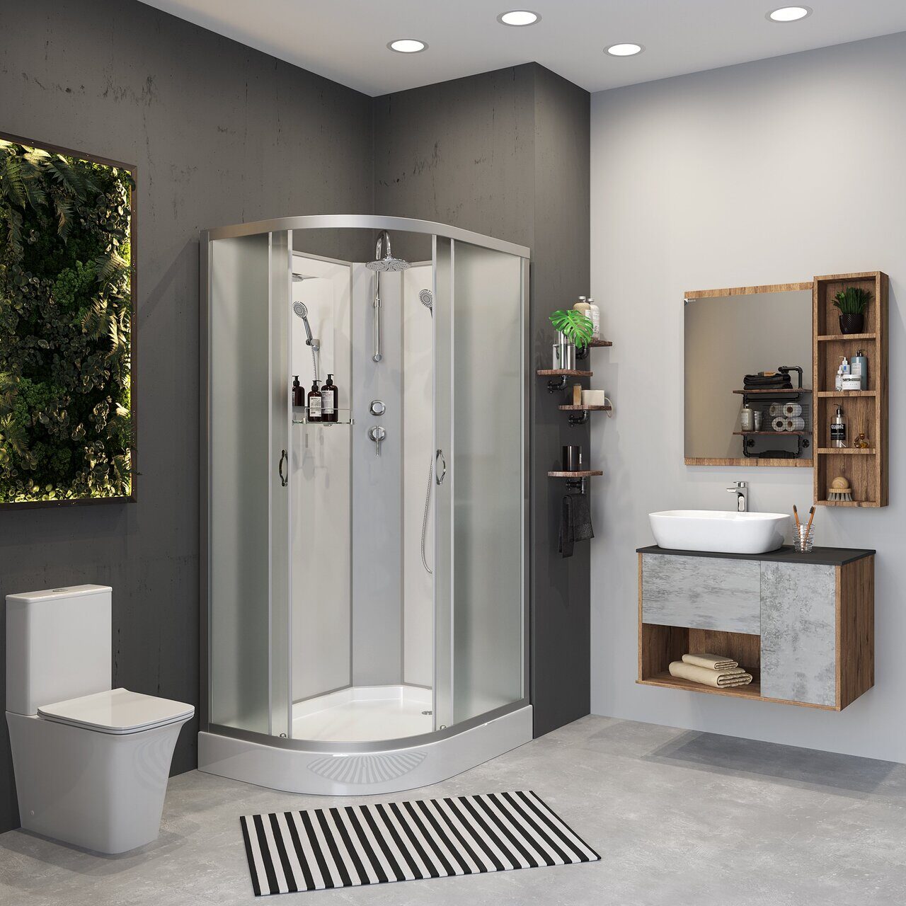 Оснащение Душевой гарнитур / Зеркало / Полочка / Тропический (верхний) душ