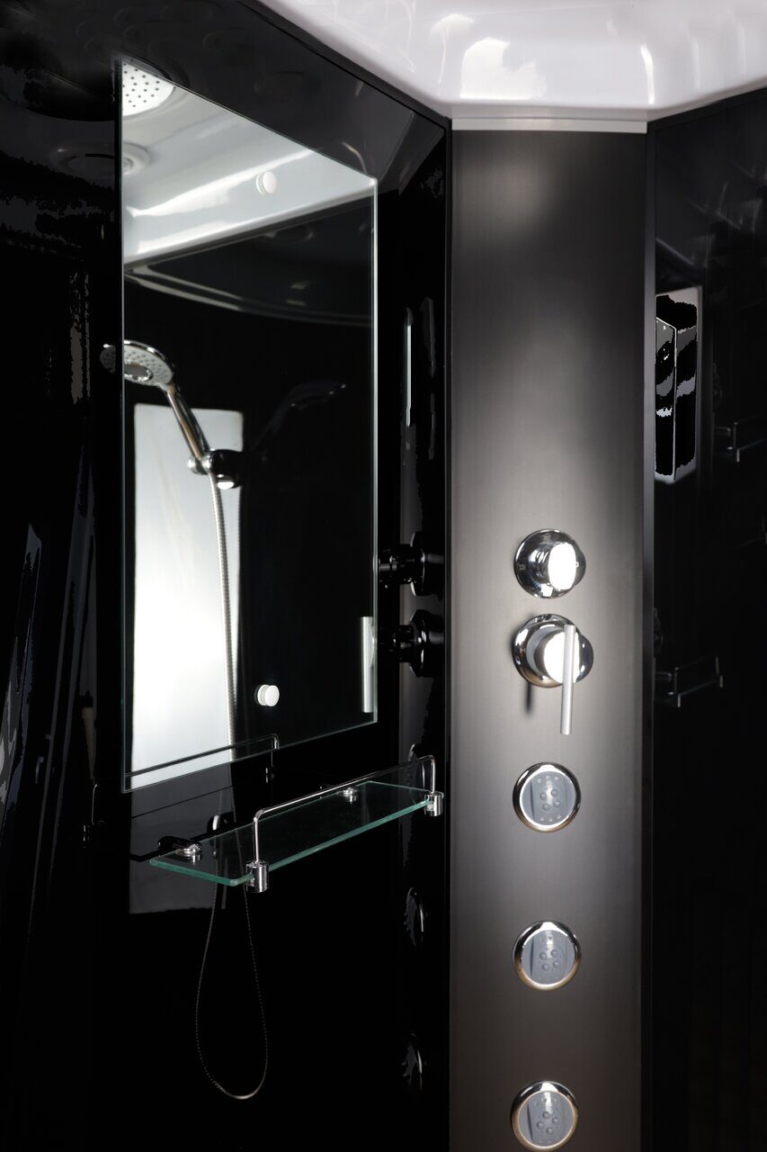 Стильная душевая кабина Niagara Classic NG-6501-14G 900х900х2150 сочетает в себе высокую функциональность, практичность и надежность. Для изготовления применяют безопасное закаленное стекло толщиной 4 мм, надежно фиксируемое алюминиевым профилем. Цвет профиля черный. В комплекте: зеркало, полочка, тропический (верхний) душ, душевой гарнитур.