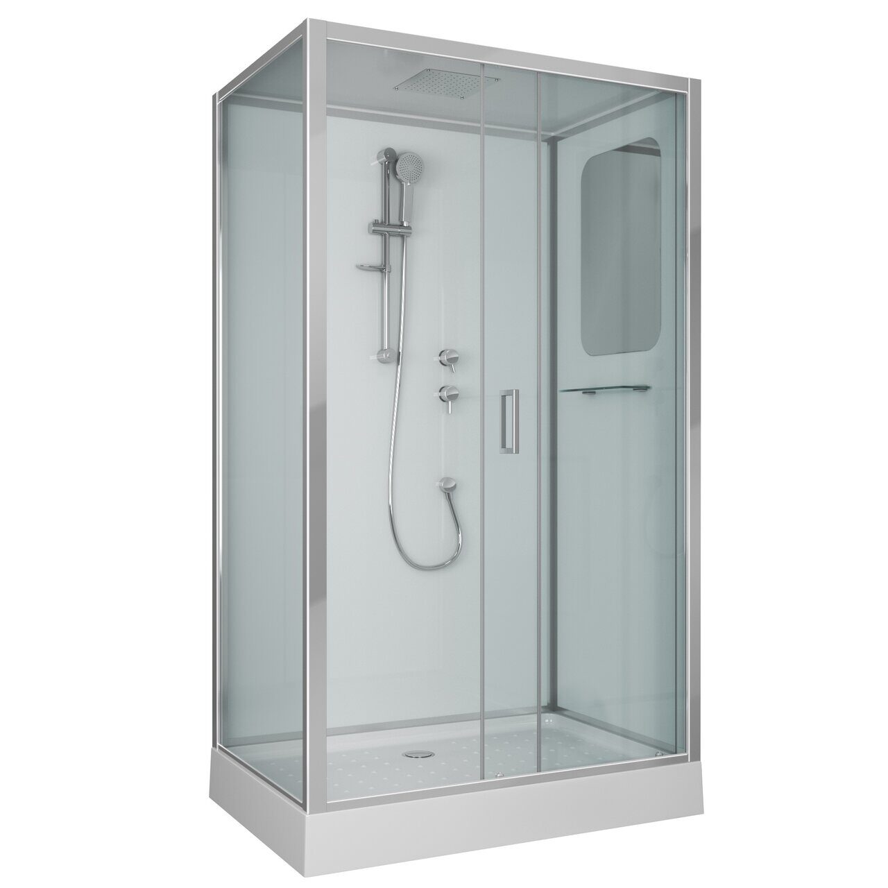 Оснащение Душевой гарнитур / Зеркало / Переключатель режимов / Полочка / Сифон / Смеситель / Тропический (верхний) душ