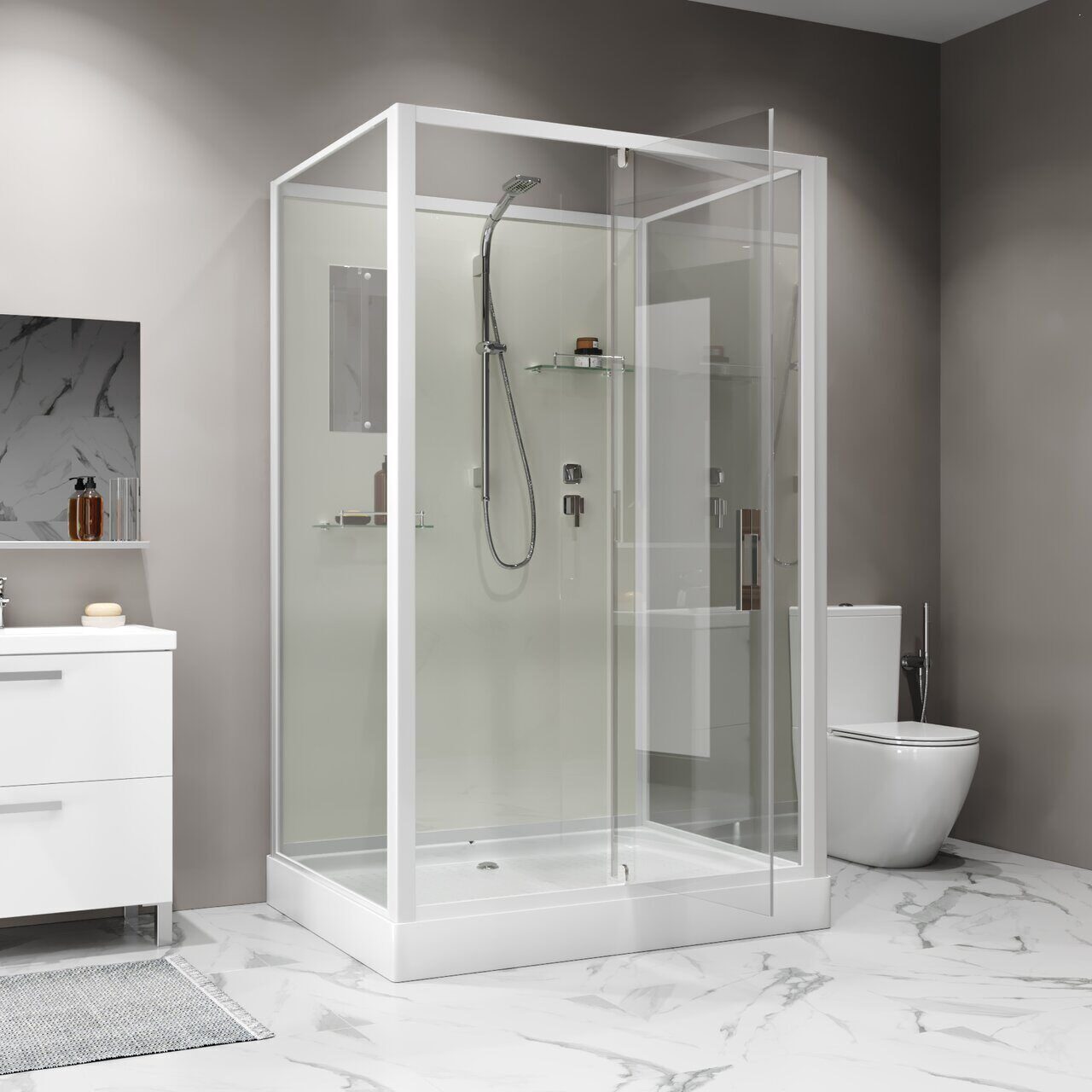 Стильная душевая кабина Niagara Standart ST120/90/15Q/BK 120х90х210 прямоугольник профиль белый без крыши сочетает в себе высокую функциональность, практичность и надежность. Для изготовления применяют безопасное закаленное стекло толщиной 5 мм, надежно фиксируемое алюминиевым профилем. Цвет профиля белый. В комплекте: душевой гарнитур, зеркало, полочки, сифон.