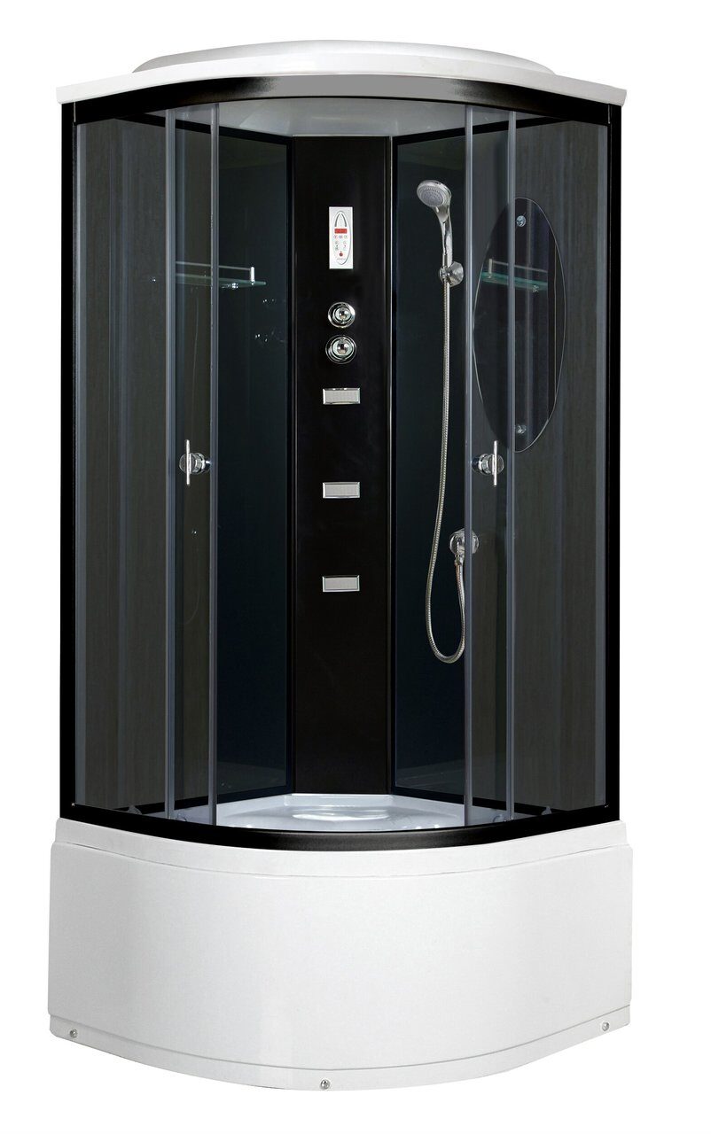 Оснащение Вентиляция / Встроенное сиденье / Душевой гарнитур / Зеркало / Полочки / Радио / Сифон / Тропический (верхний) душ