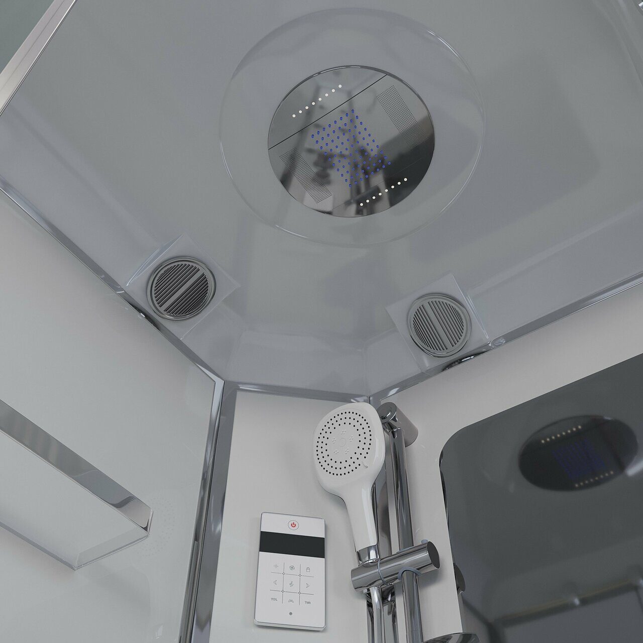 Оснащение Вентиляция / Душевой гарнитур / Зеркало / Полочка / Радио / Тропический (верхний) душ