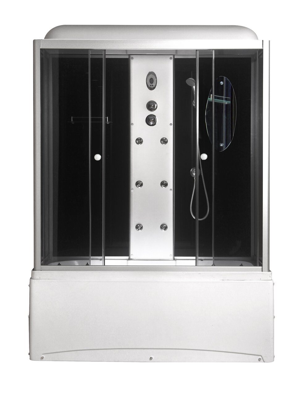 Оснащение Вентиляция / Душевой гарнитур / Зеркало / Полочки / Радио / Сифон / Тропический (верхний) душ
