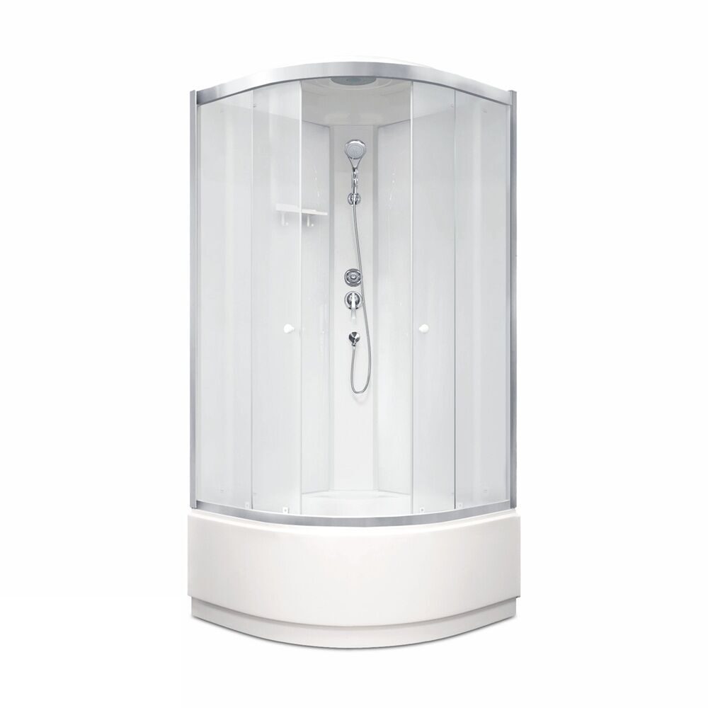 - Высокий поддон (42 см), ABS-пластик с добавлением акрила, белый, полукруглый. Противоскользящее покрытие поддона предупреждает падения.
