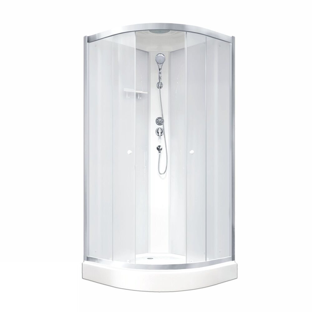 - Поддон: низкий, 12 см, четверть круга. Материал - АВS с добавлением акрила. Рельефное дно предупреждает падения.