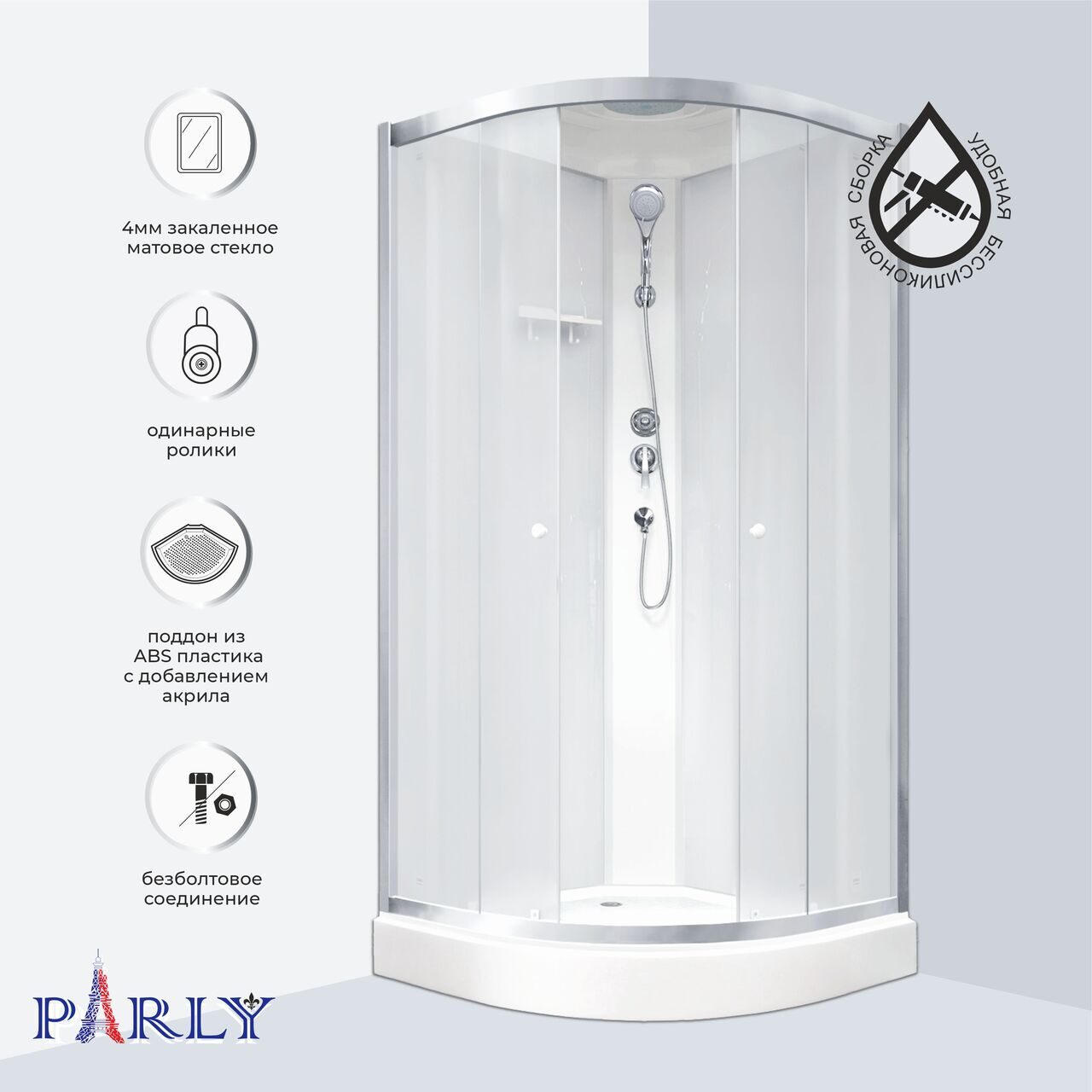 - Современный дизайн. Модельный ряд кабин PARLY представлен в различных стилях, конфигурациях и цветах, а также с различными формами поддонов. Поэтому можно индивидуально подобрать кабину практически для любого дизайнерского решения. Презентабельный вид кабинам придают закаленные стекла, которые способствуют надежности и не боятся химических средств, что позволяет дольше сохранить их внешнюю привлекательность.
