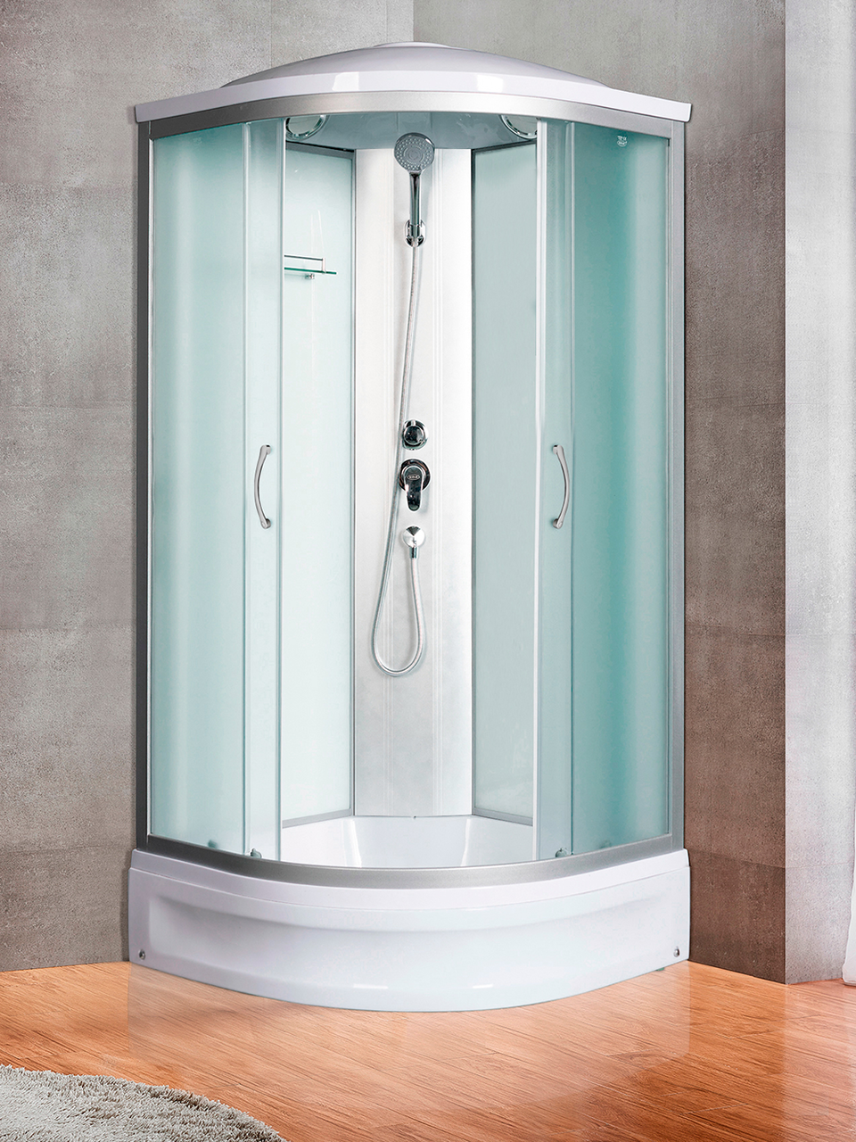 Оснащение Душевой гарнитур / Передний съемный экран / Переключатель режимов / Полочка / Сифон / Смеситель / Тропический (верхний) душ