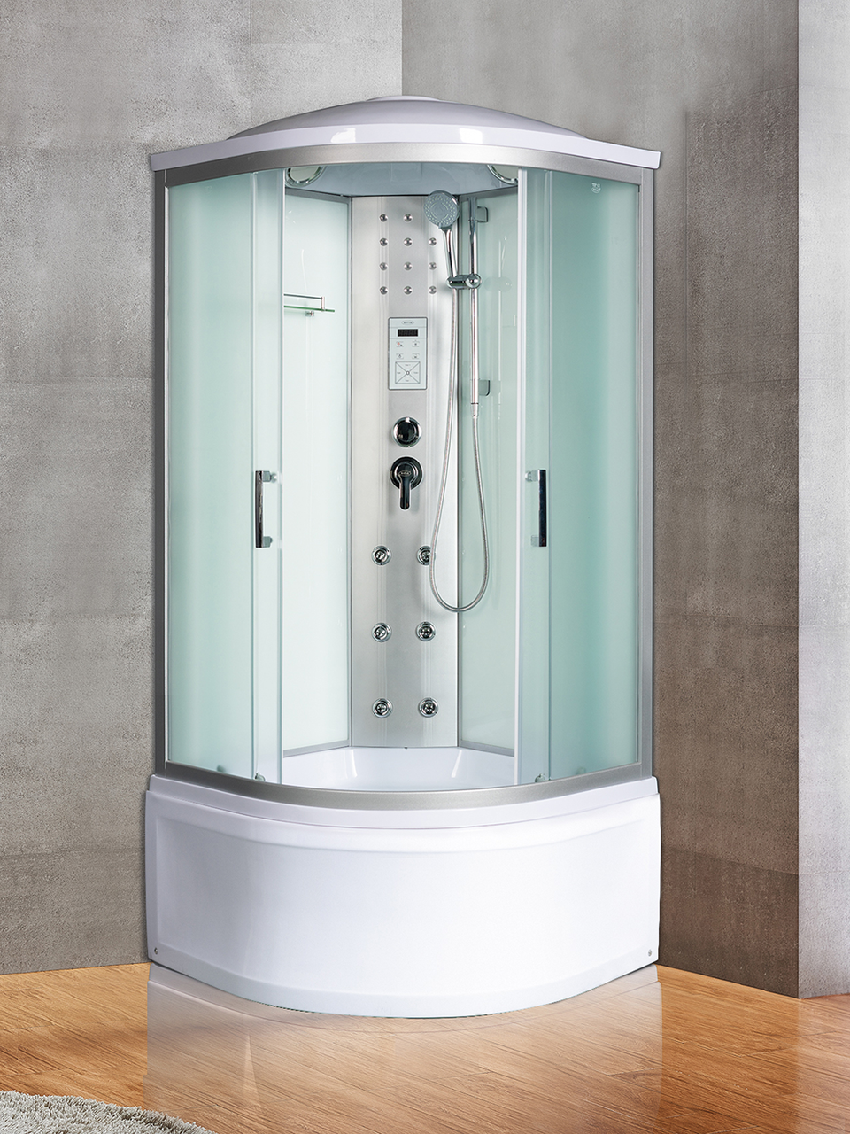 Стильная душевая кабина River Dunay 100/44 MT сочетает в себе высокую функциональность, практичность и надежность. Для изготовления применяют безопасное закаленное стекло толщиной 4 мм, надежно фиксируемое алюминиевым профилем. Цвет профиля хром матовый. В комплекте встроенное сиденье, вентиляция, сенсорный пульт управления, радио, гидромассажные форсунки, тропический (верхний) душ, душевой гарнитур, смеситель, переключатель режимов, полочка, сифон, передний съемный экран.