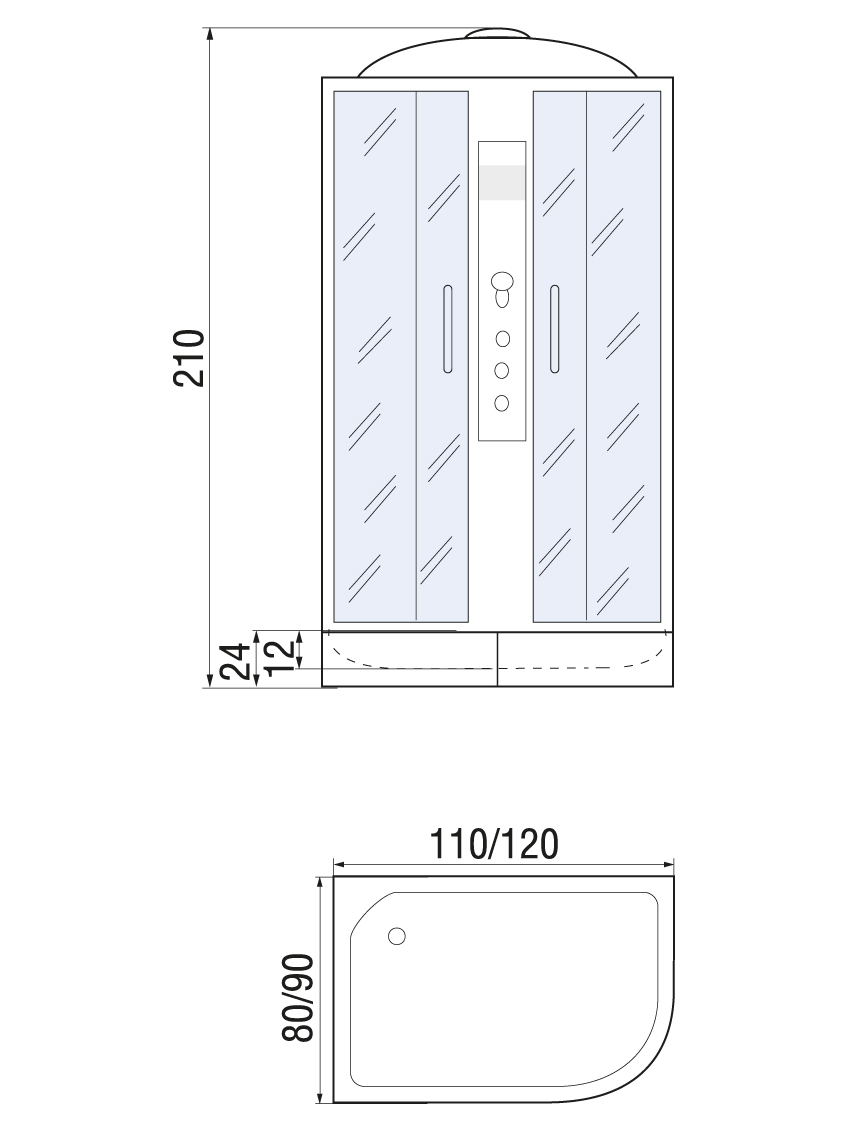 Стильная душевая кабина River Dunay 110/80/24 MT L сочетает в себе высокую функциональность, практичность и надежность. Для изготовления применяют безопасное закаленное стекло толщиной 4 мм, надежно фиксируемое алюминиевым профилем. Цвет профиля хром матовый. В комплекте вентиляция, сенсорный пульт управления, радио, гидромассажные форсунки, тропический (верхний) душ, душевой гарнитур, смеситель, переключатель режимов, полочка, сифон, передний съемный экран.
