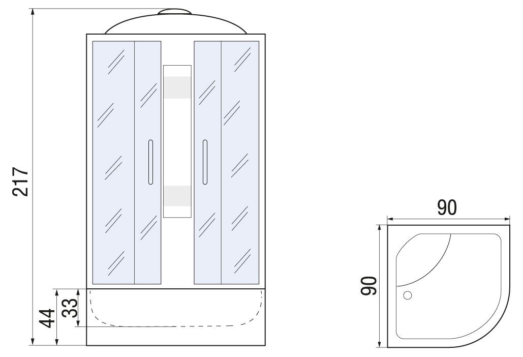 - Размеры (ш/г/в): 90х90х217